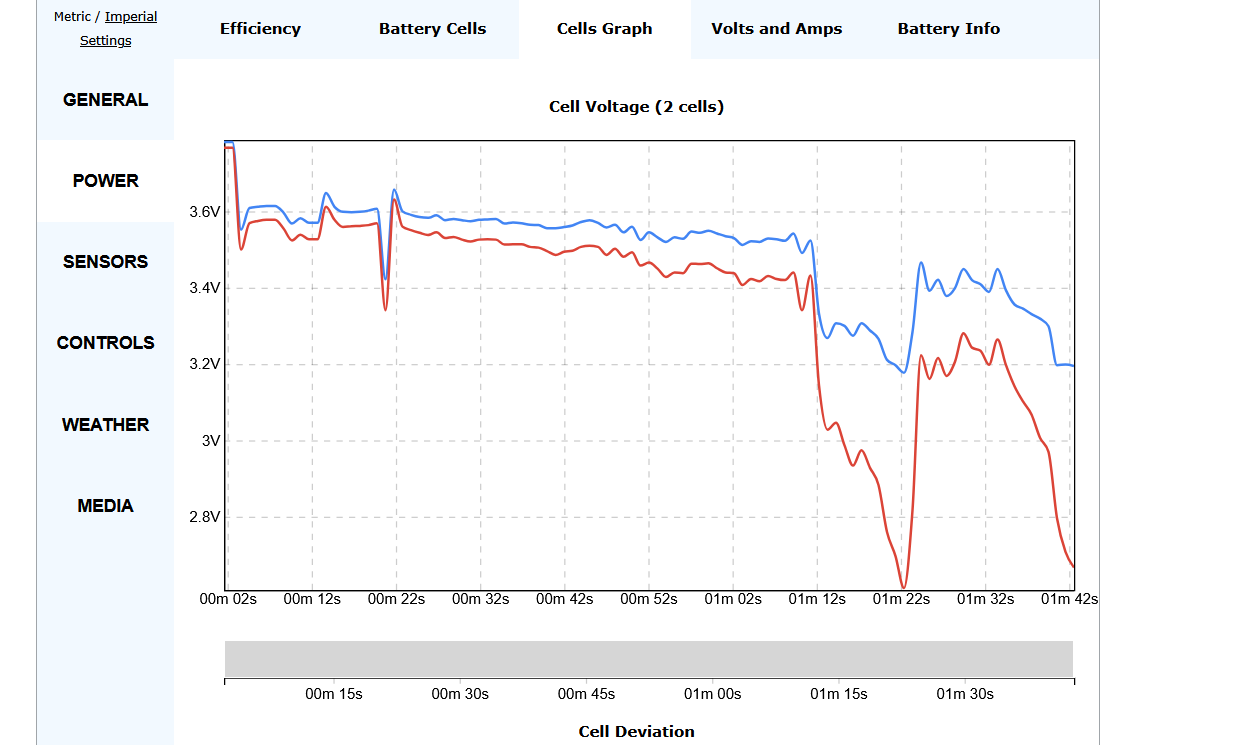 The battery was a as it says on the data before taking off.. It’s not lying. I knew what it was but the flight was for a specifically short run. .5 mins max.. But didn’t happen.