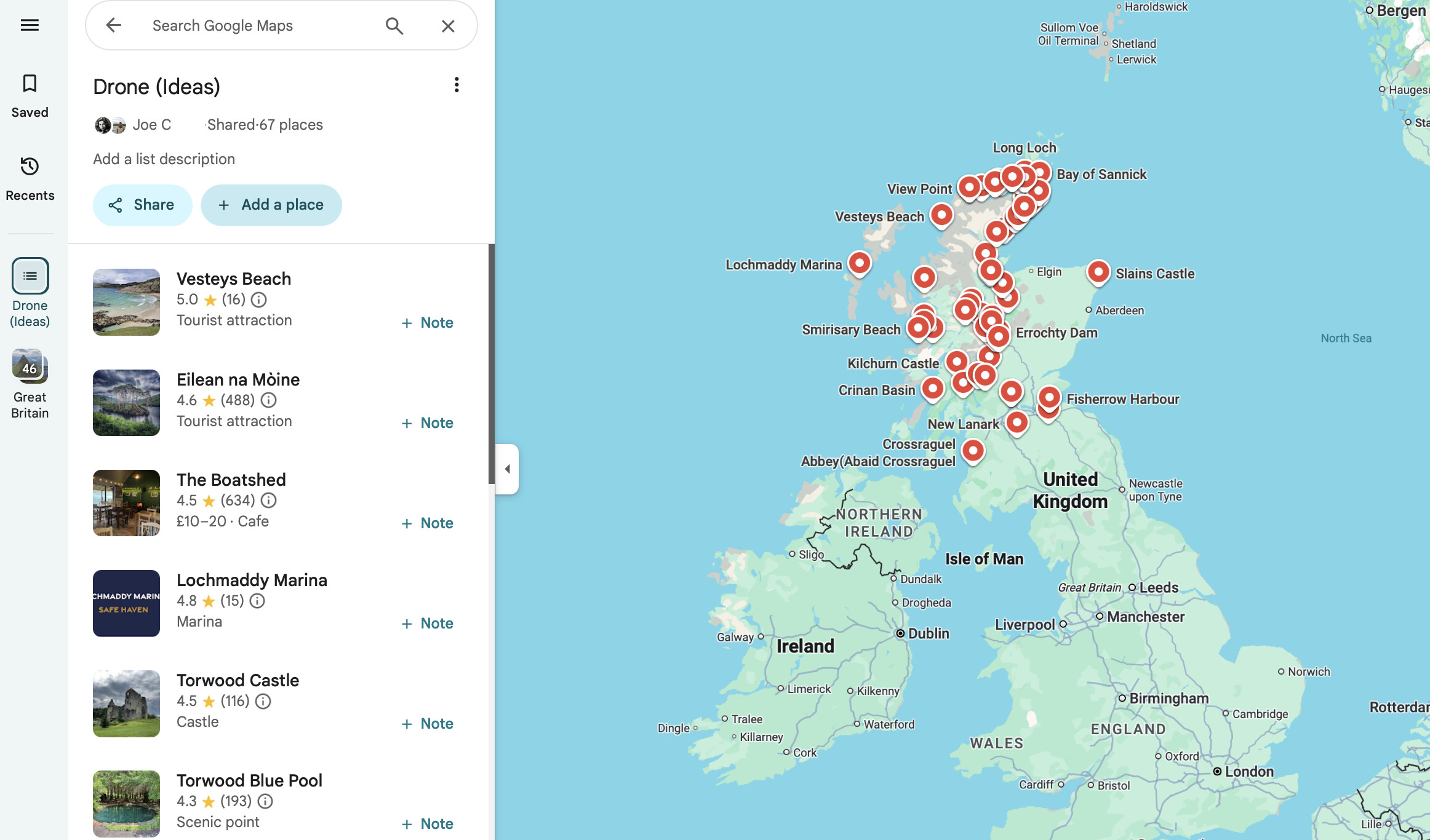 I have been saving locations onto my tablets google maps (I’d forgotten that being android, it is always connected to google) over the past few days.