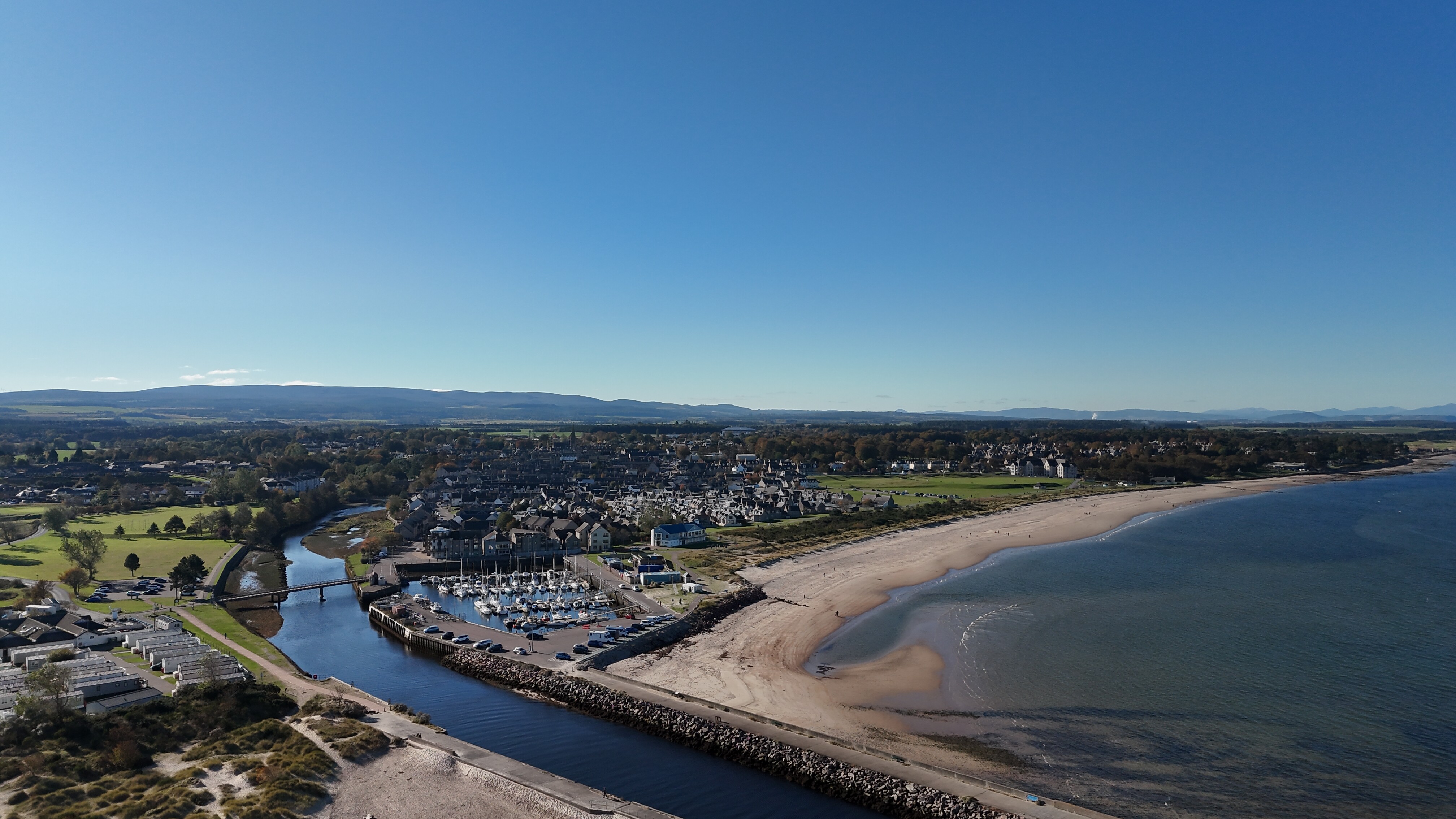 Stunning beach and harbour area in Nairn just off the Lochloy holiday park which doesn't allow drone flying in its holiday park however the beach and surrounding areas are public. There are occasional notams due to military air traffic in the area at times.