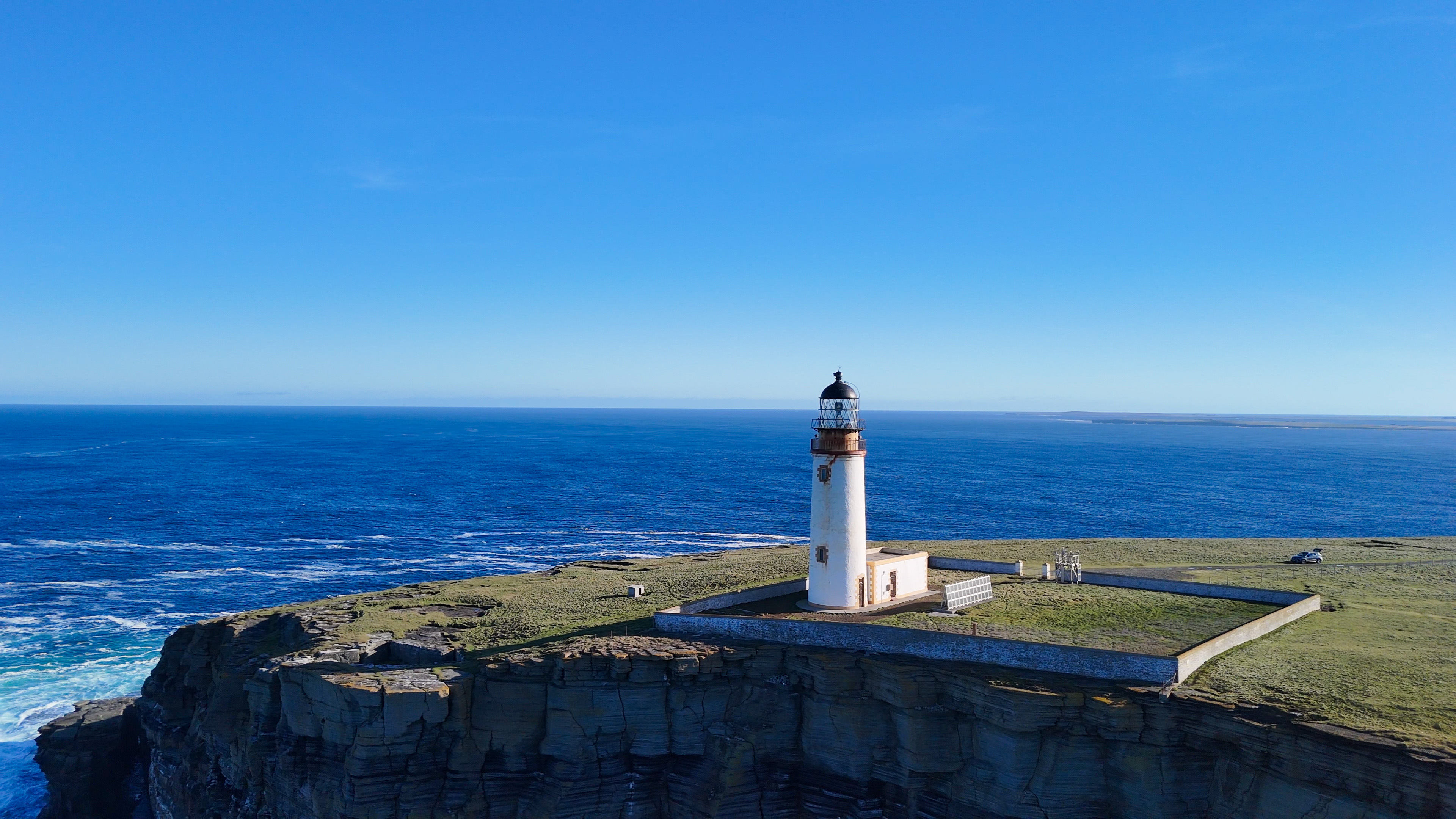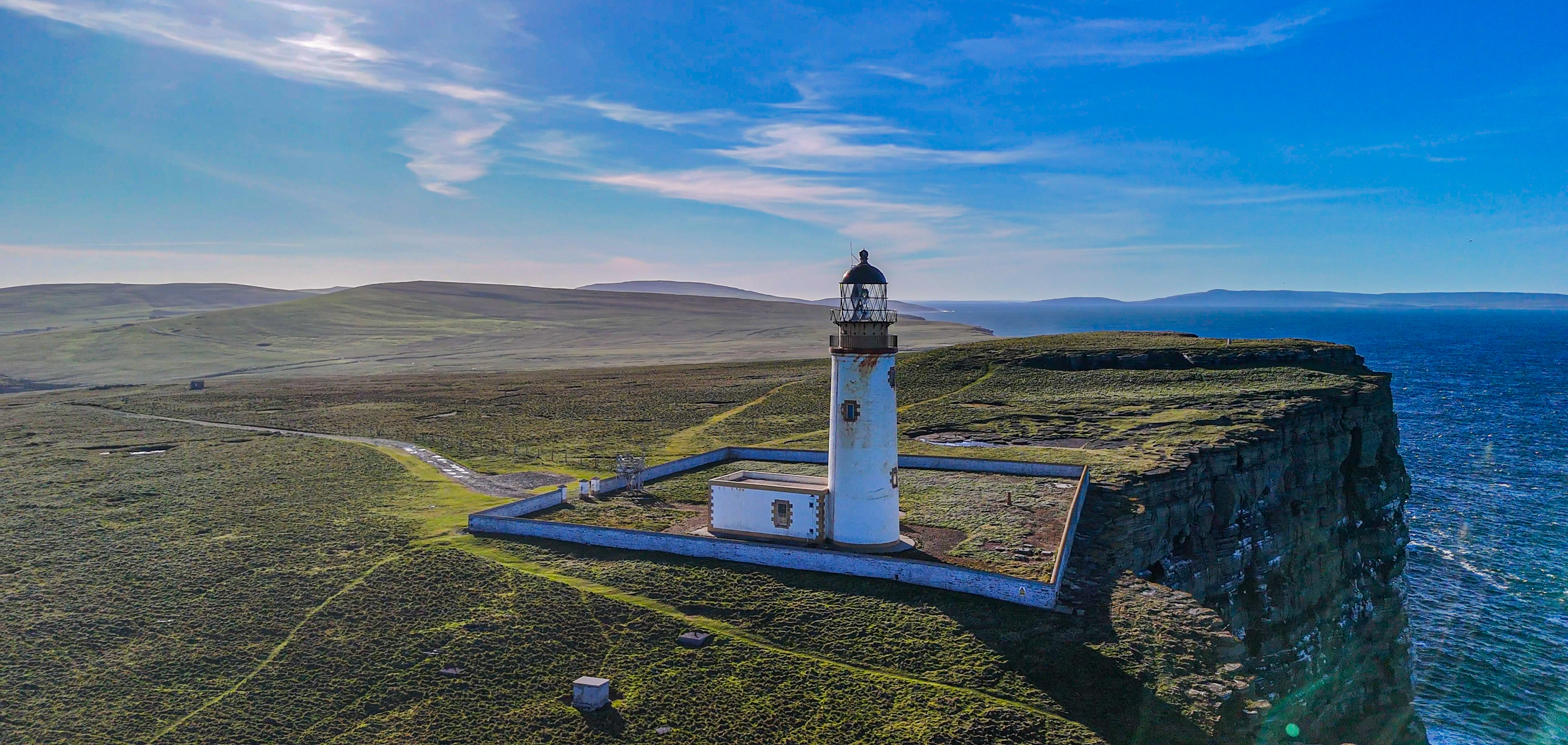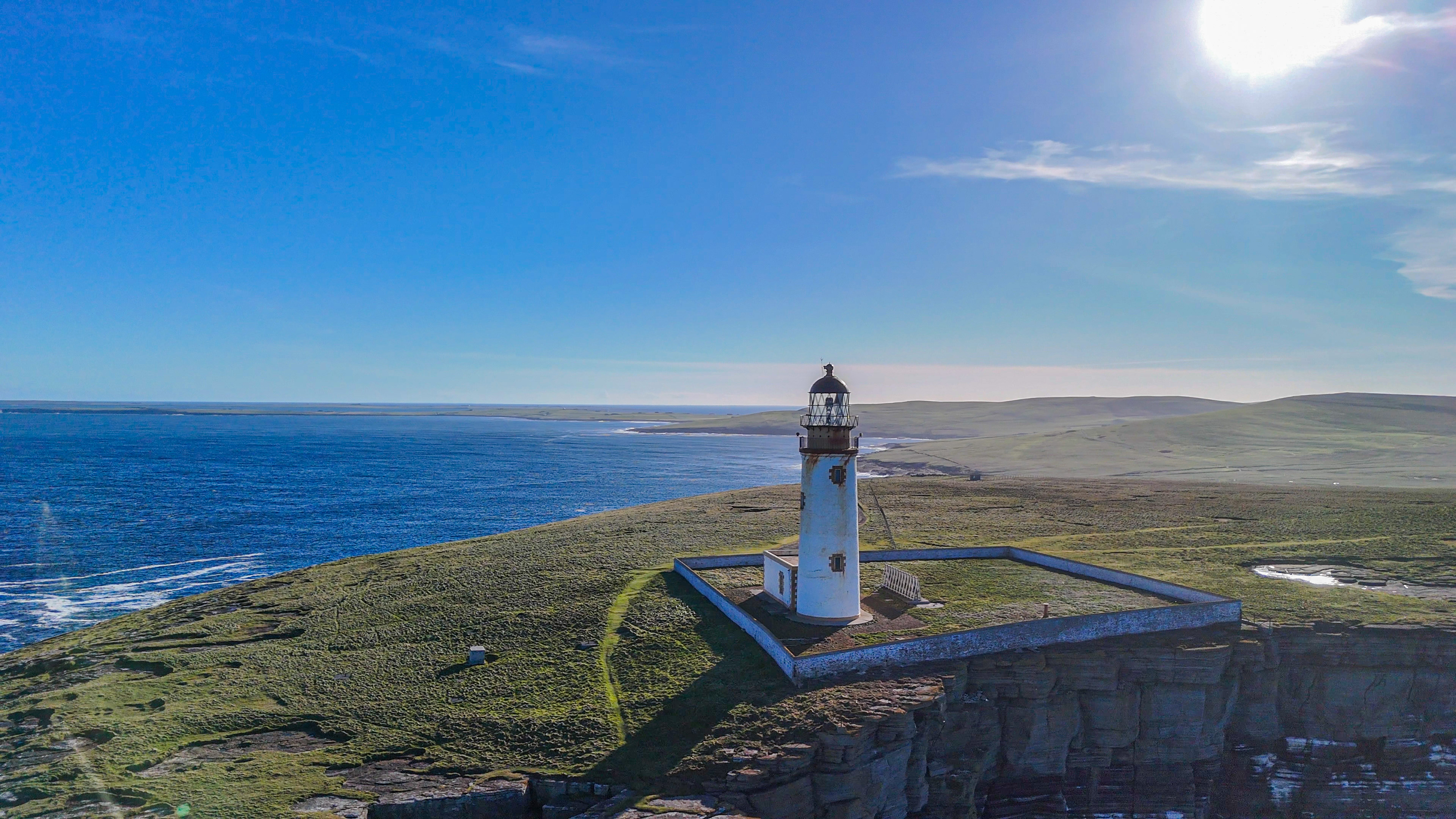 Noup Head Lighthouse is a great place to fly not just because it is one of the most northley lighthouses on Orkney, and is in a great cliff top, but involves an adventurous journey to get to it apart from the 1 and half hour boat trip from the Orkney mainland there is then a 2ml off road drive to get to it, which can be a bit testing in places.