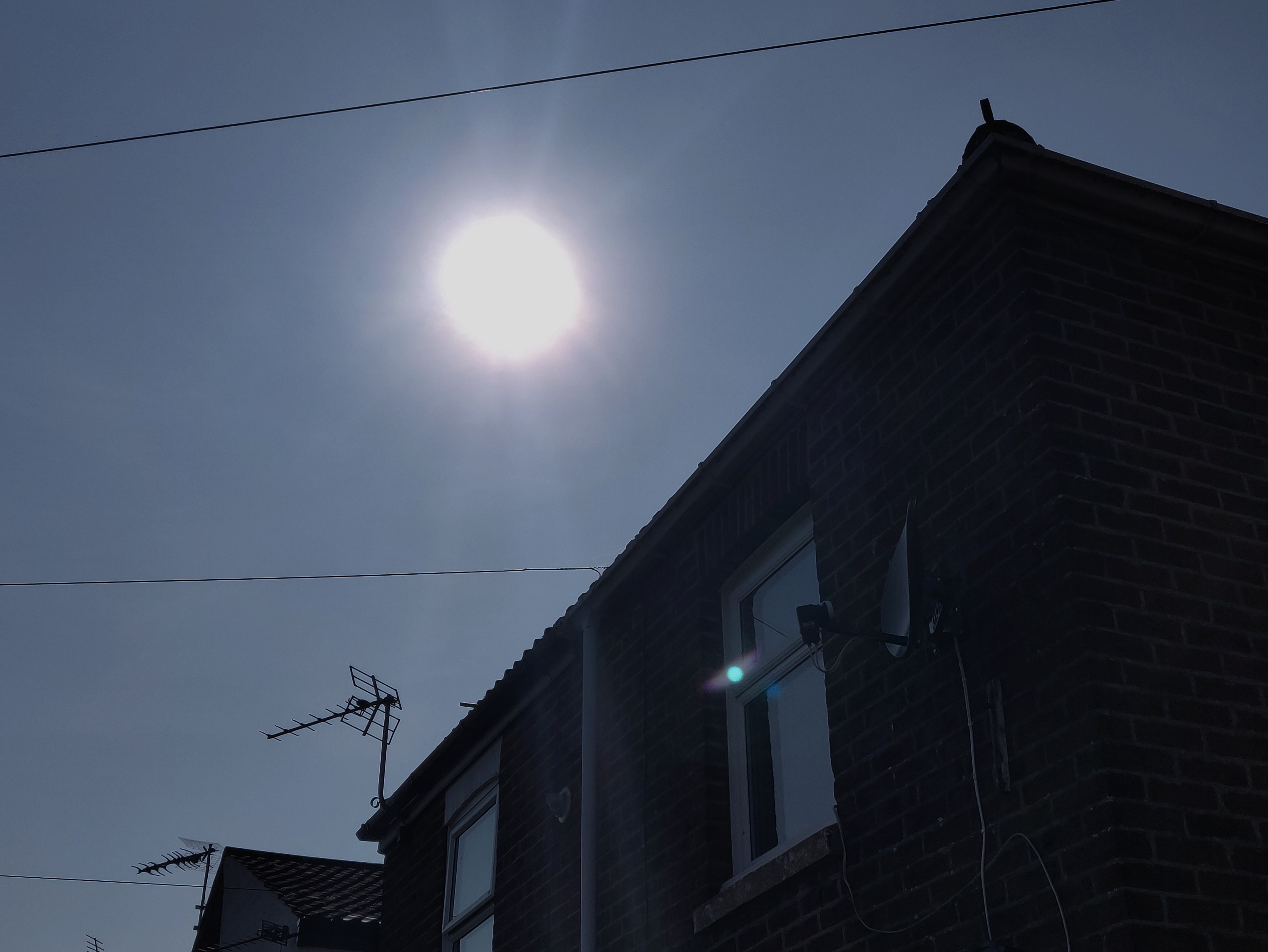 In an automatic mode, and including the sun within the frame, the exposure would tend to compensate for the brightness of the sun and render the other aspects of the image dark, not