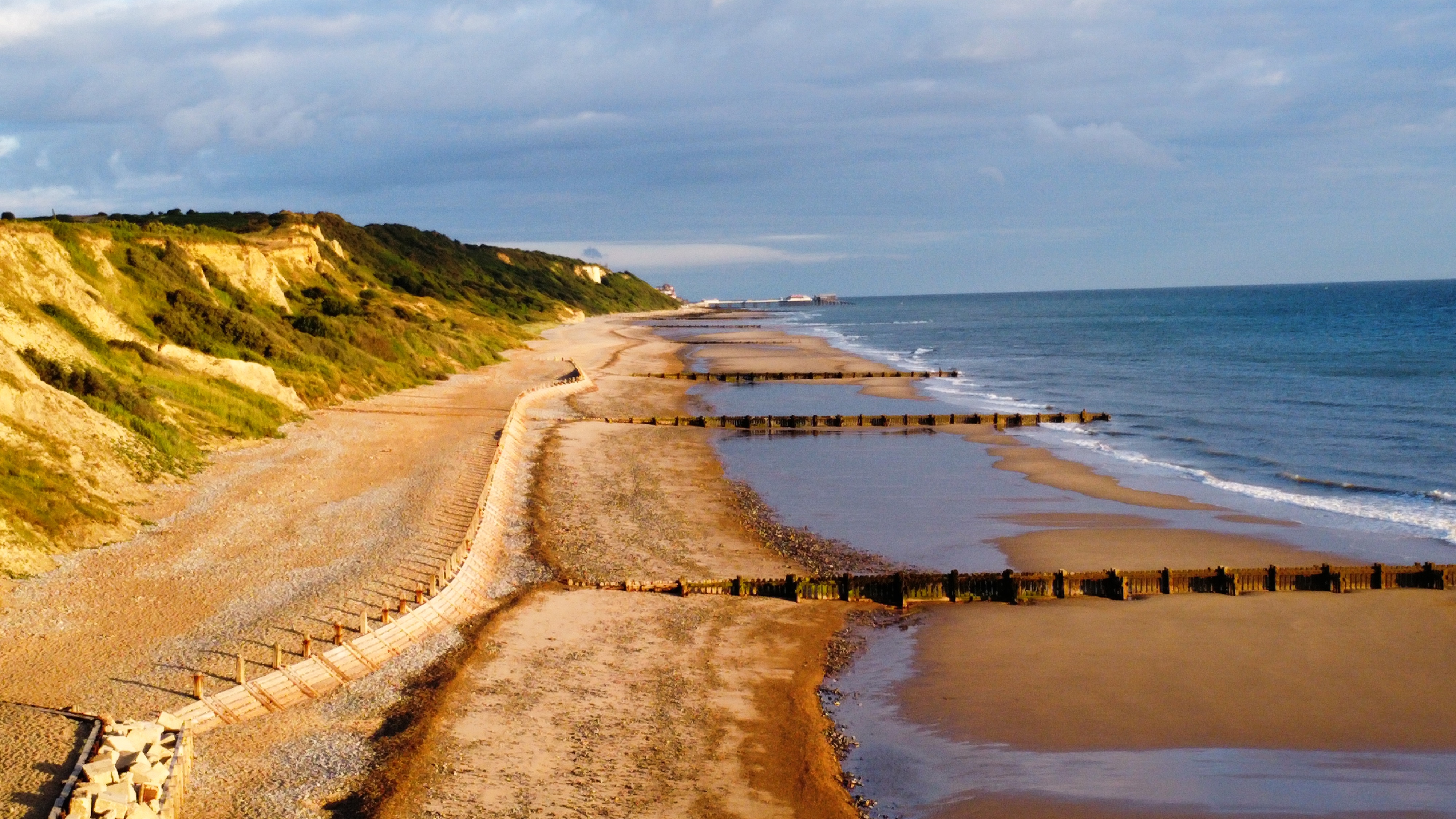 A lovely early morning at Overstrand , Norfolk . Car park nearby is free up to 8am , a short walk to beach front and lovely views !