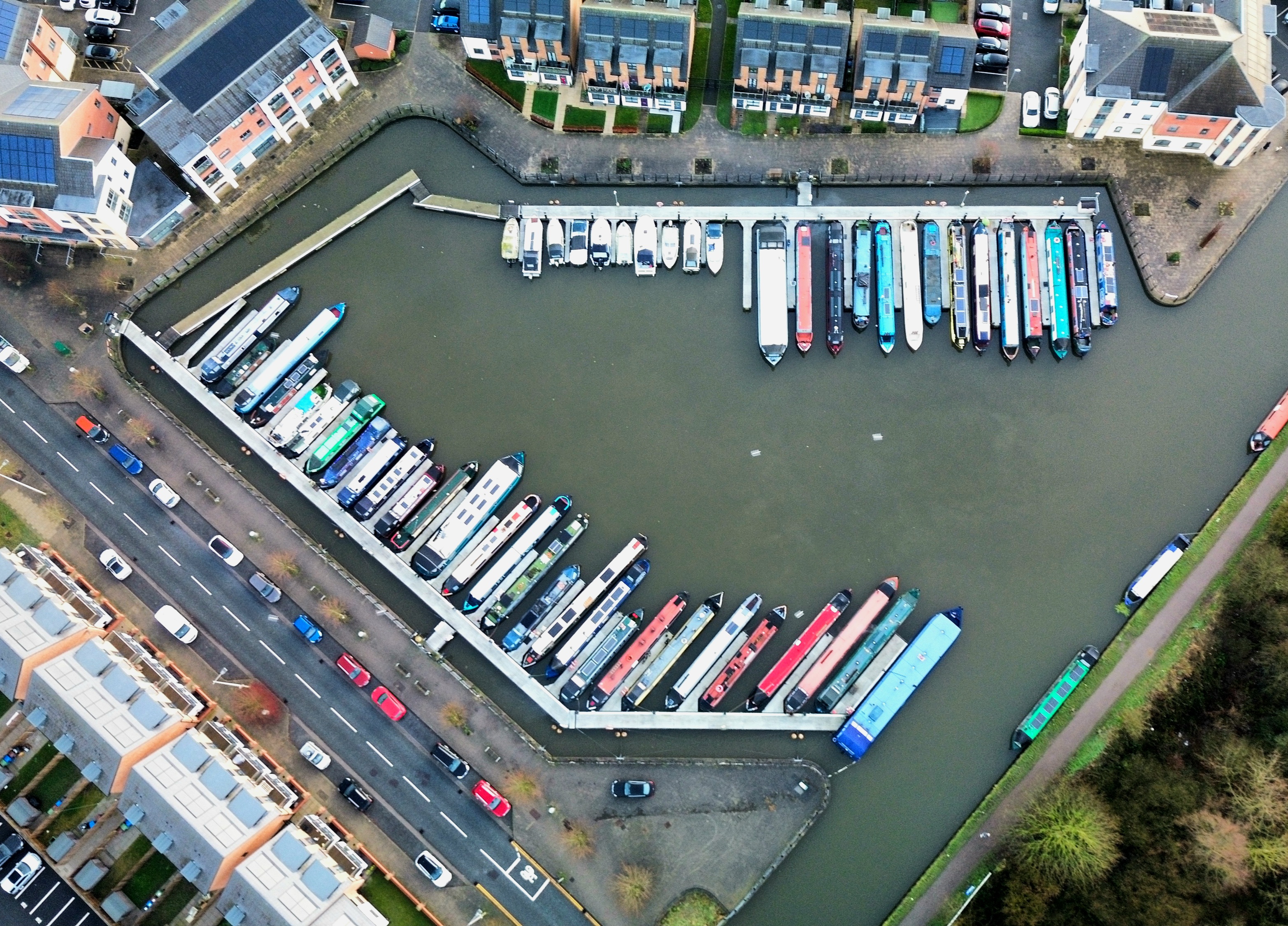 Situated on Leeds Liverpool canal, adjacent to Pennington Flash Nr Leigh. Canal boats and an interesting little bridge. Took off from tow path canal side lined with trees though there are a couple of areas where there are gaps to safely TOAL. Car Park 100 yds SW of bridge.