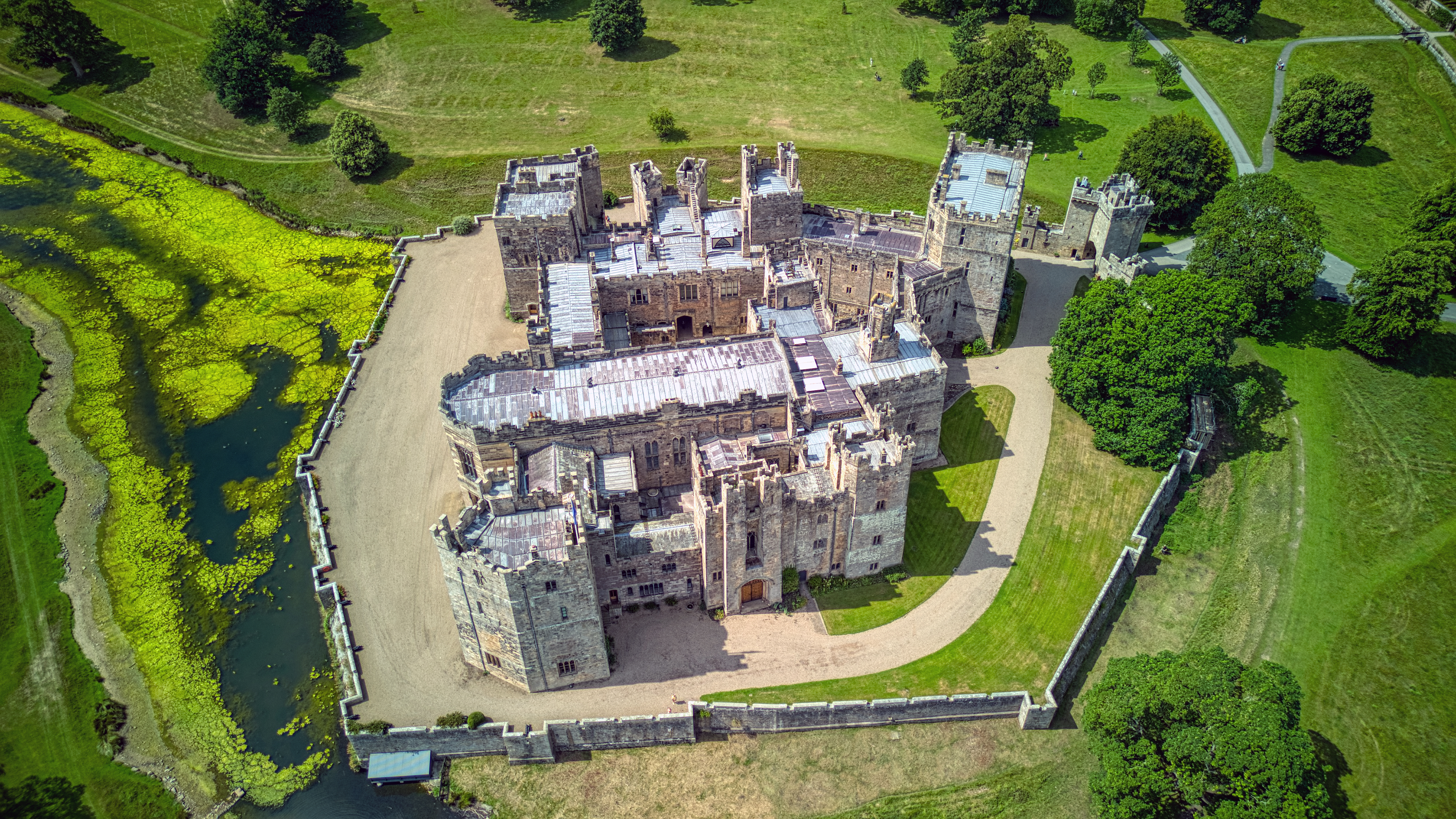 There is a layby opposite the castle for TOAL, just time it correctly to get the drone over the road.