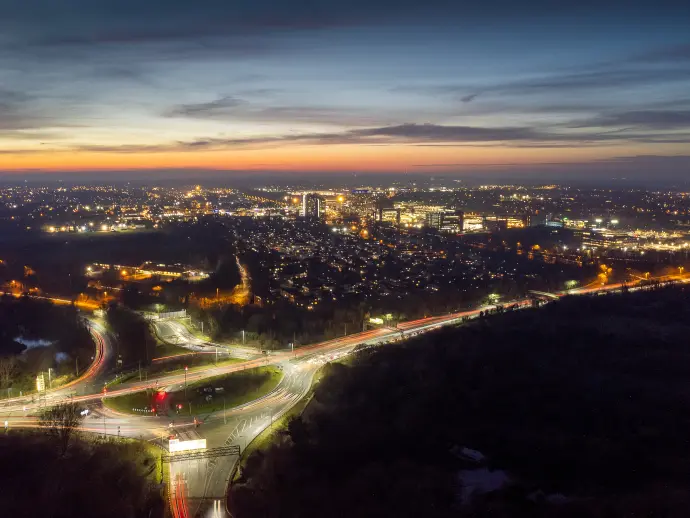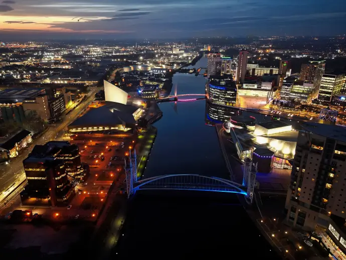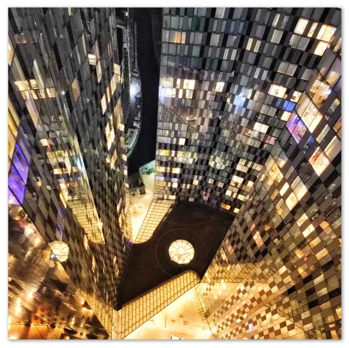 This is Deansgate Square, Manchester, photographed at 9.20pm today with my DJI Mini 2.