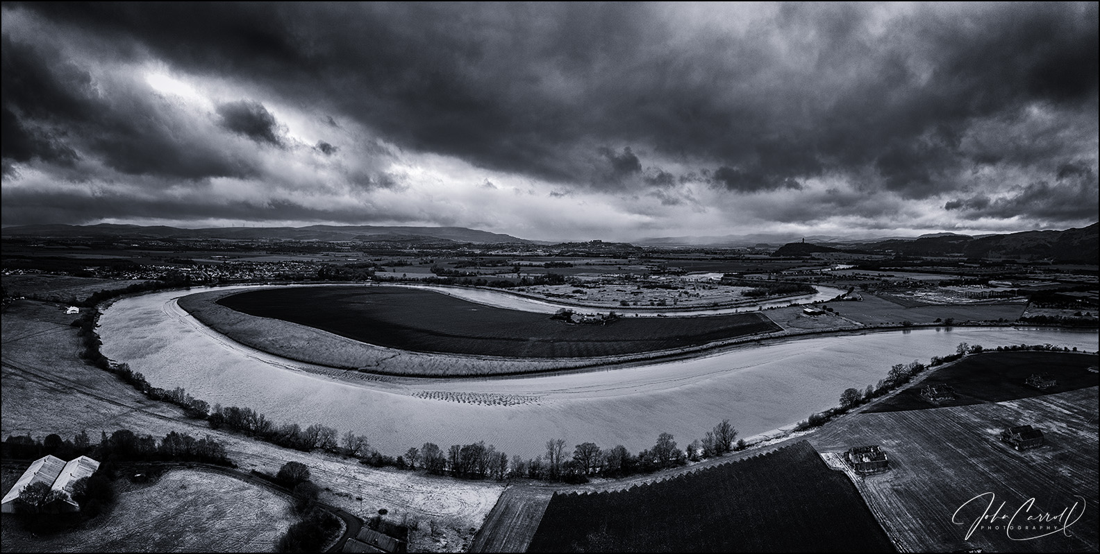 First chance today to get out to shoot rivers, but it was grey and drizzly, so for me that means mono photography. This is the meandering River Forth snaking it’s way towards Stirling Castle and The Wallace Monument (in the distance) from the old Royal Naval Armament Depot at Bandeath. Mavic 3 Classic - 10/02/2023 @ 13:40