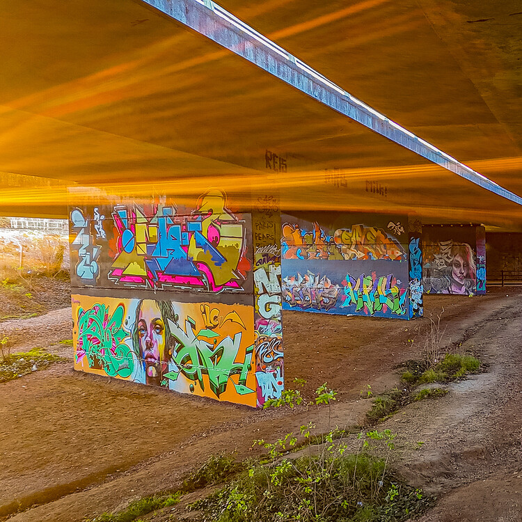 Congratulations to Guy = @speedracer66 for a colourful view under the bridge supporting the A329M: