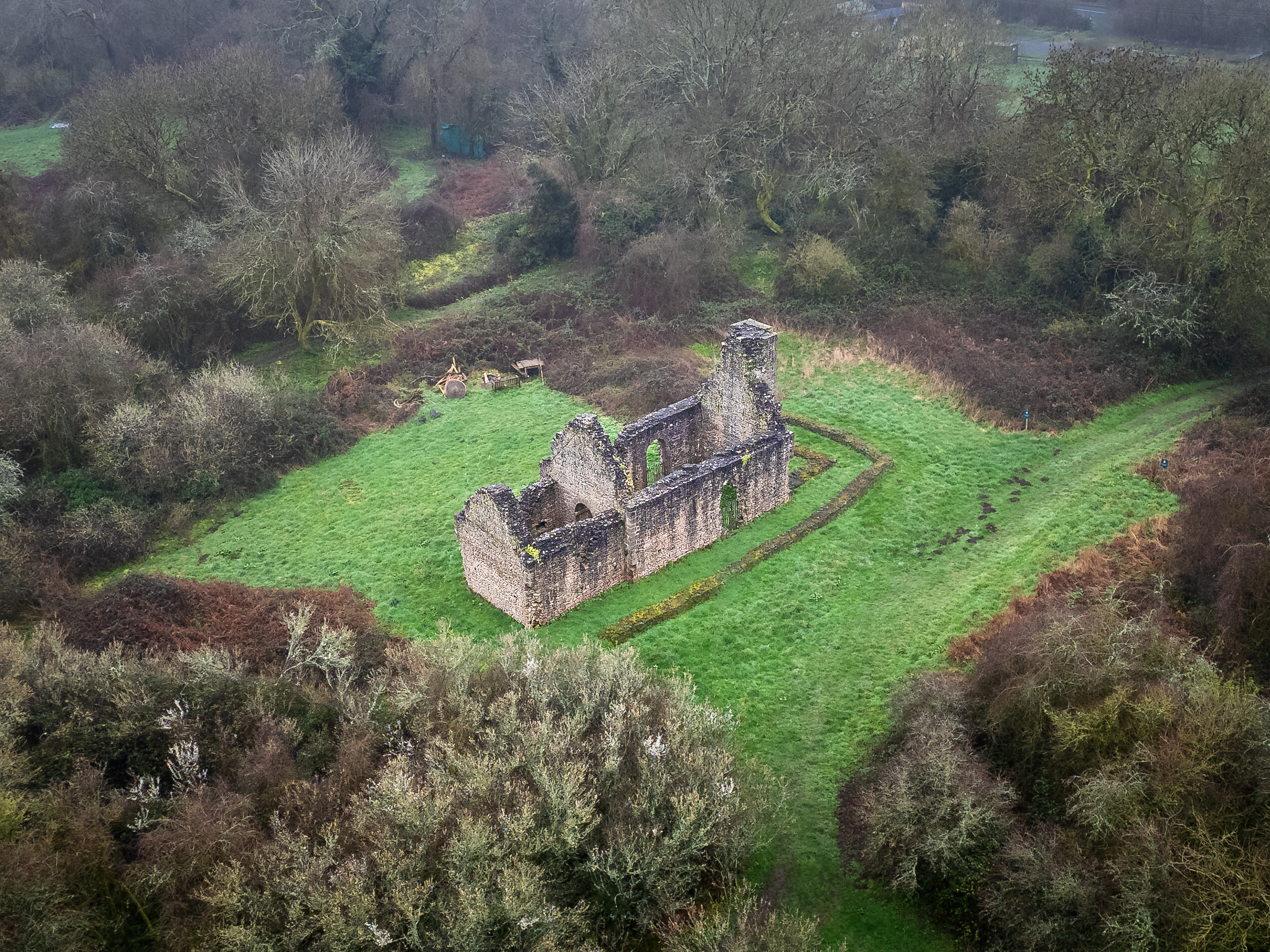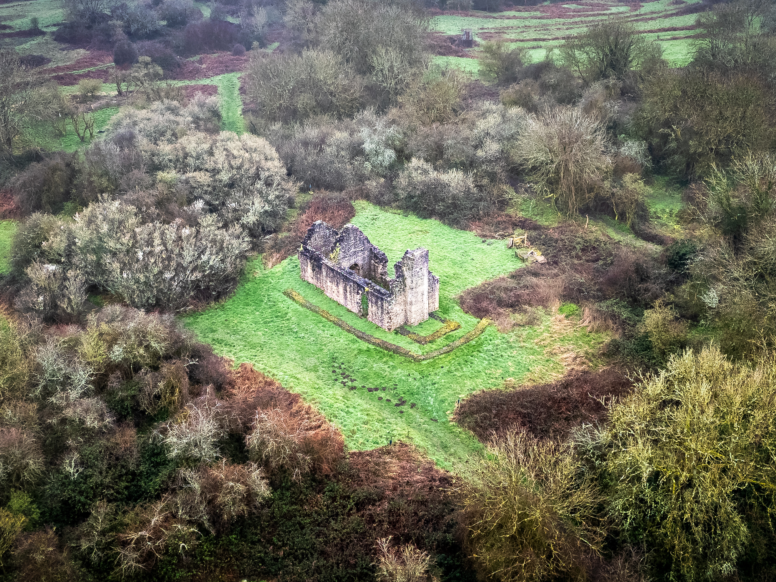 Aerial images reveal the evocative ruins of Runston Chapel, the last remnant of a medieval village in Mathern, Monmouthshire.