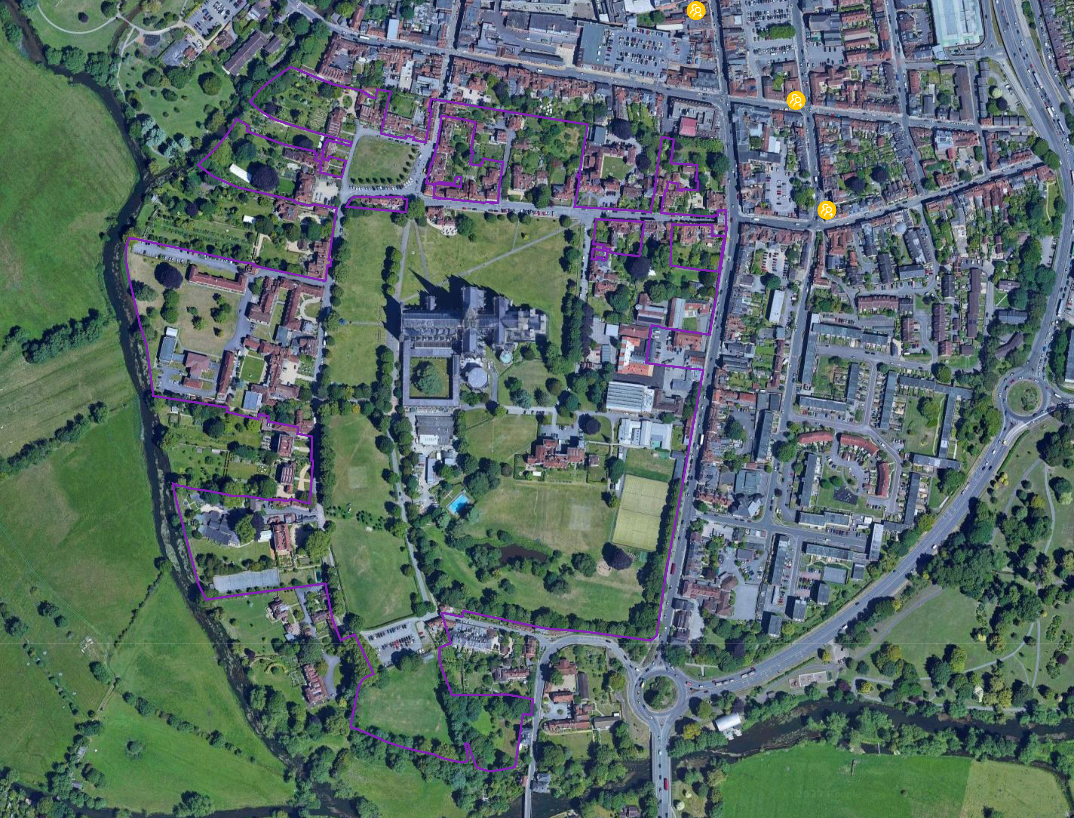This image shows the land owned by Industrial and Provident Society who own the land upon which The Cathedral Church Of The Blessed Virgin Mary of Salisbury sits, to give it its full title.