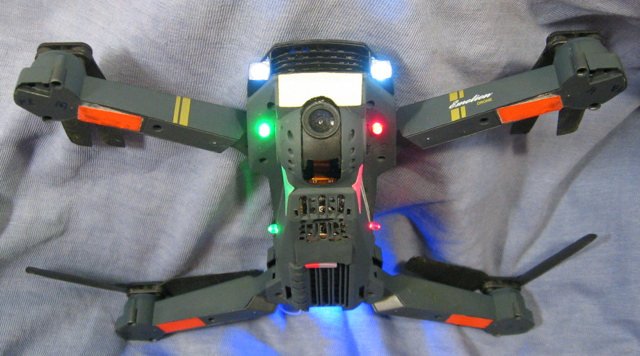 My little 100g E58 drone is grey-green, has ony 100m range, but is very difficult to see in front of trees etc.