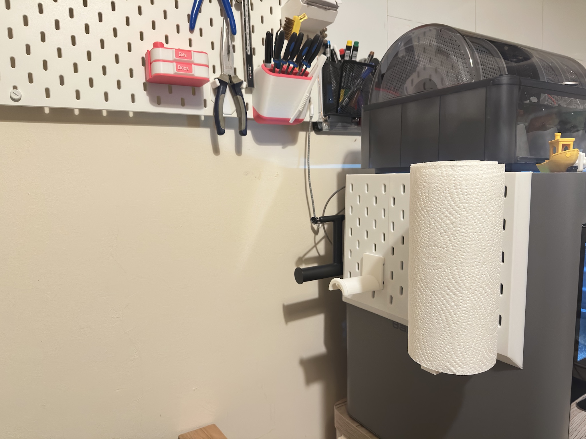 Then I got carried away and printed a small Skådis that clips to the side of the P2S, and a spool holder that clips in to that so I can finally try the external spool option.