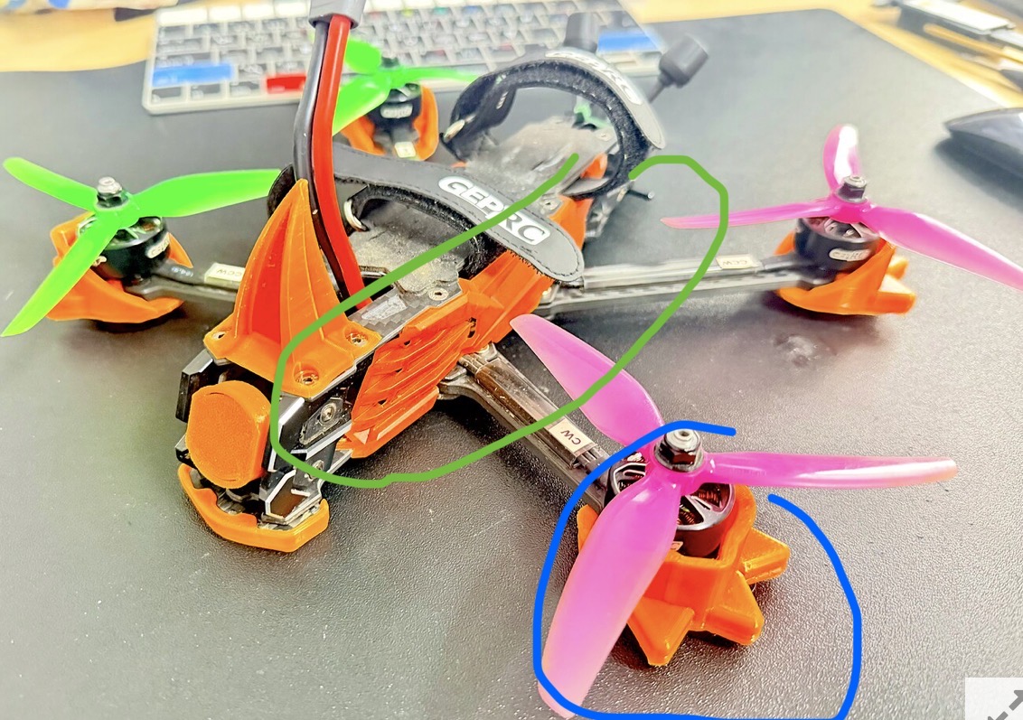 The parts circled in green, were already fitted and supplied by GepRC (along with a set of black ones too) when I purchased the quad.