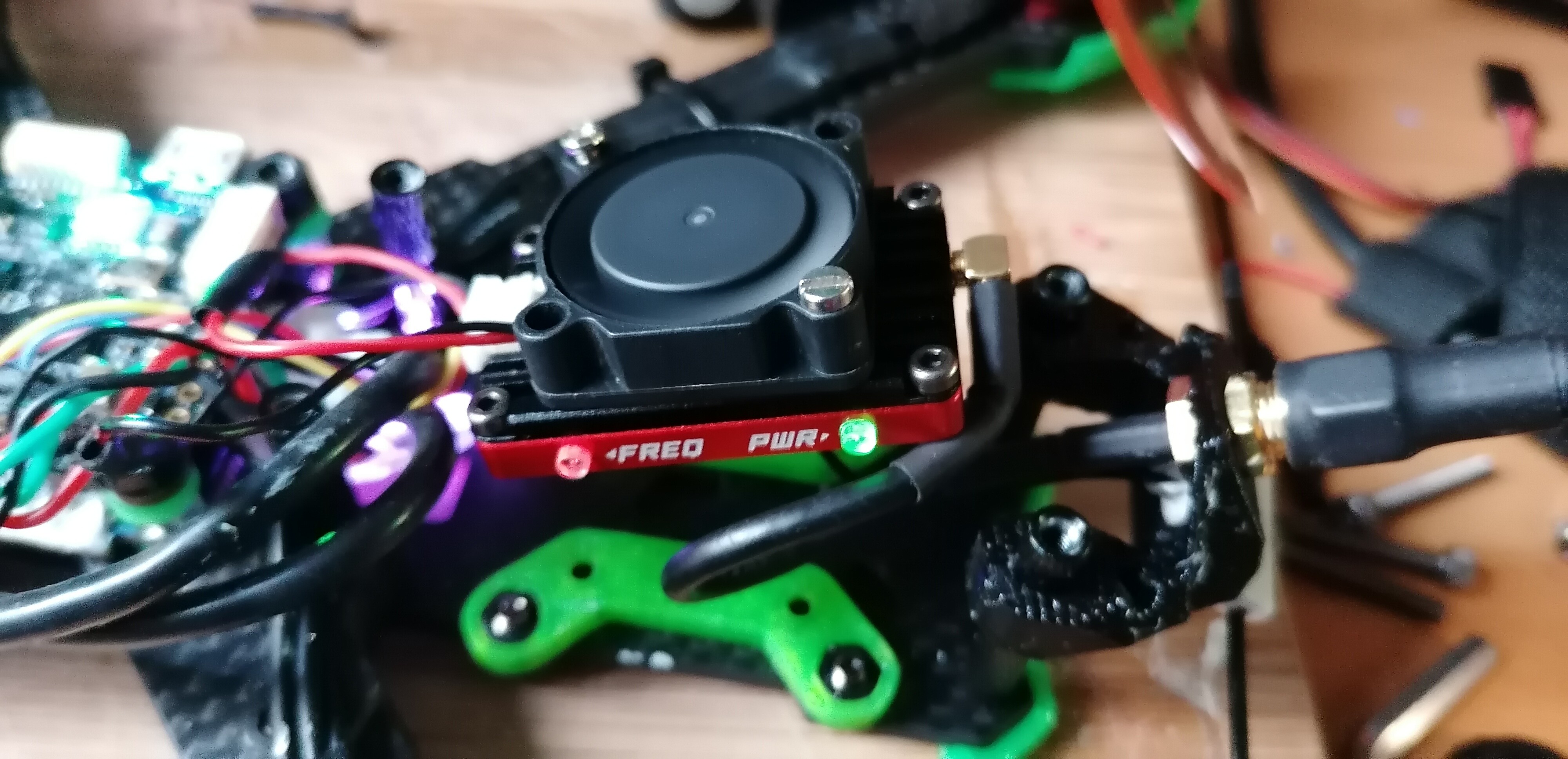 What had happened on that little crash is that the way I had jammed the RX board in gave no chance of any flex to the antenna lead and when the rear TPU antenna support flexed it pulled the antenna connection off… and this lead to the disaster.