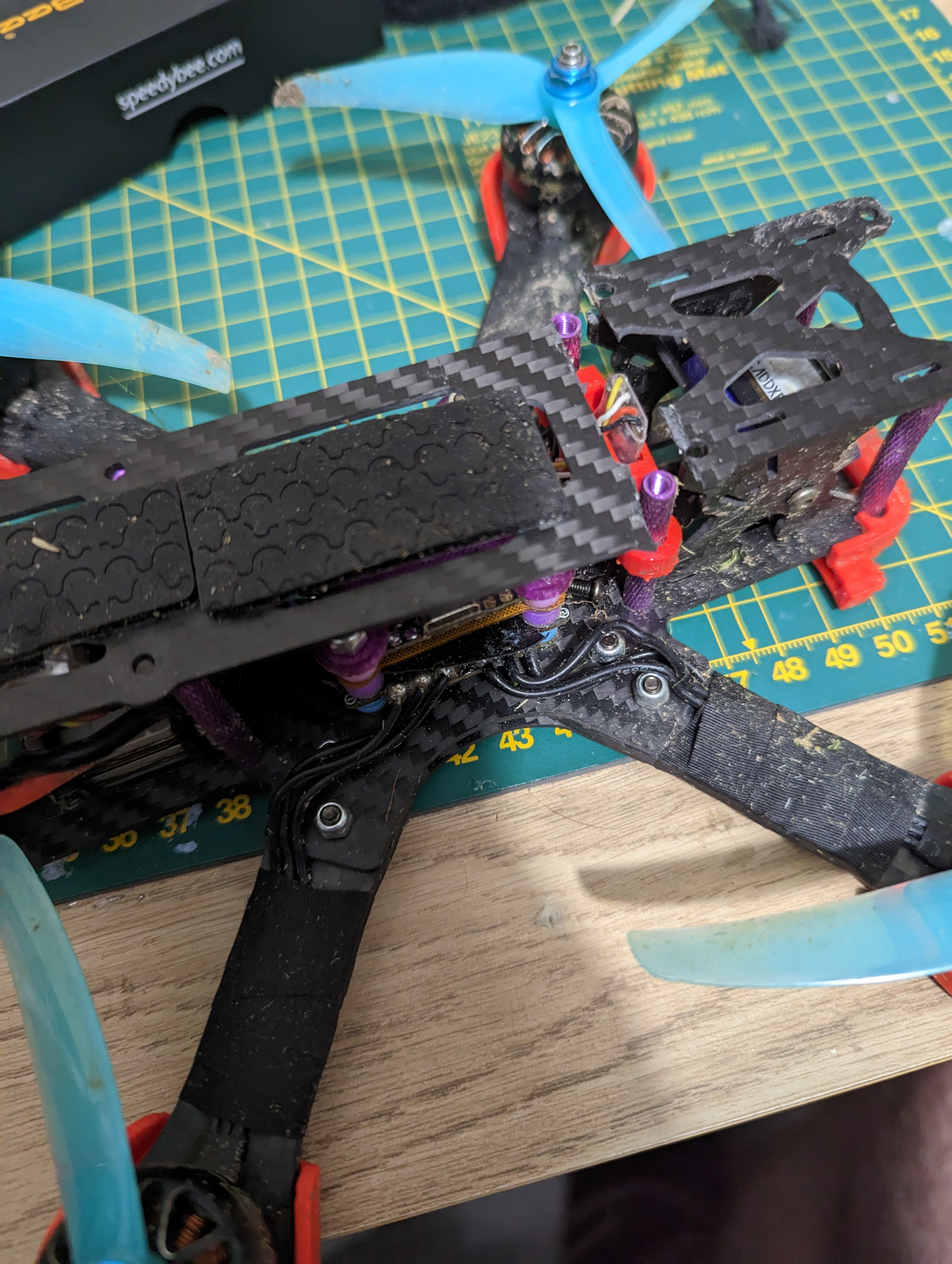 I wanted to upgrade my old QAV210, but the frame would not take a HDZero Freestyle VTX… so I’ve had to move the whole lot over. In the process I found the top plate had broken and the stack screws were bent. So a good move,