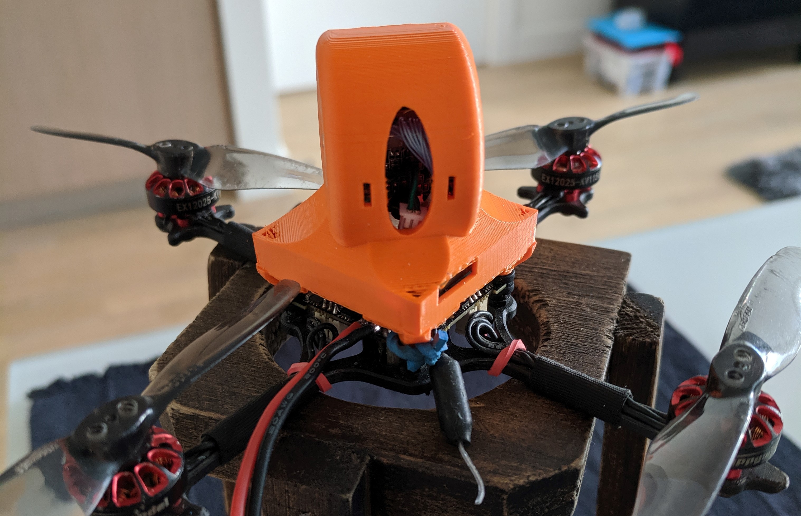 New outfit for the crux yet again… Since I put the turtle on it , the setup was too tall and I felt like the turtle board was a bit to exposed. Had a go on Tinkercad to put something together and came up with a design, which should protect it a bit better. Having installed it now, there are a few things I think could change to make it a bit lighter mainly, but will stay with this for now. The weight is exactly the same as with the high stack version. Will test how it feels on air tomorrow.
