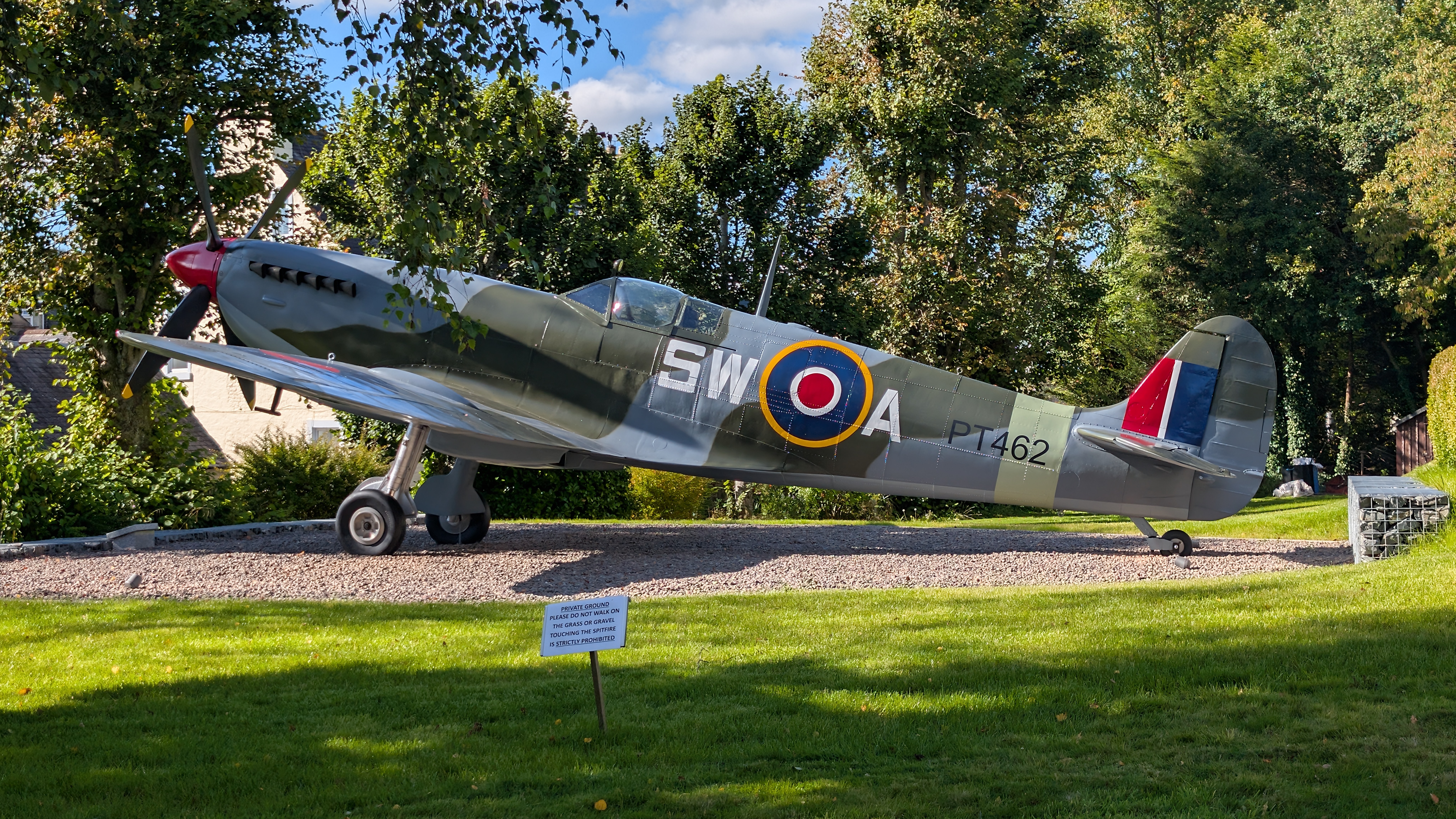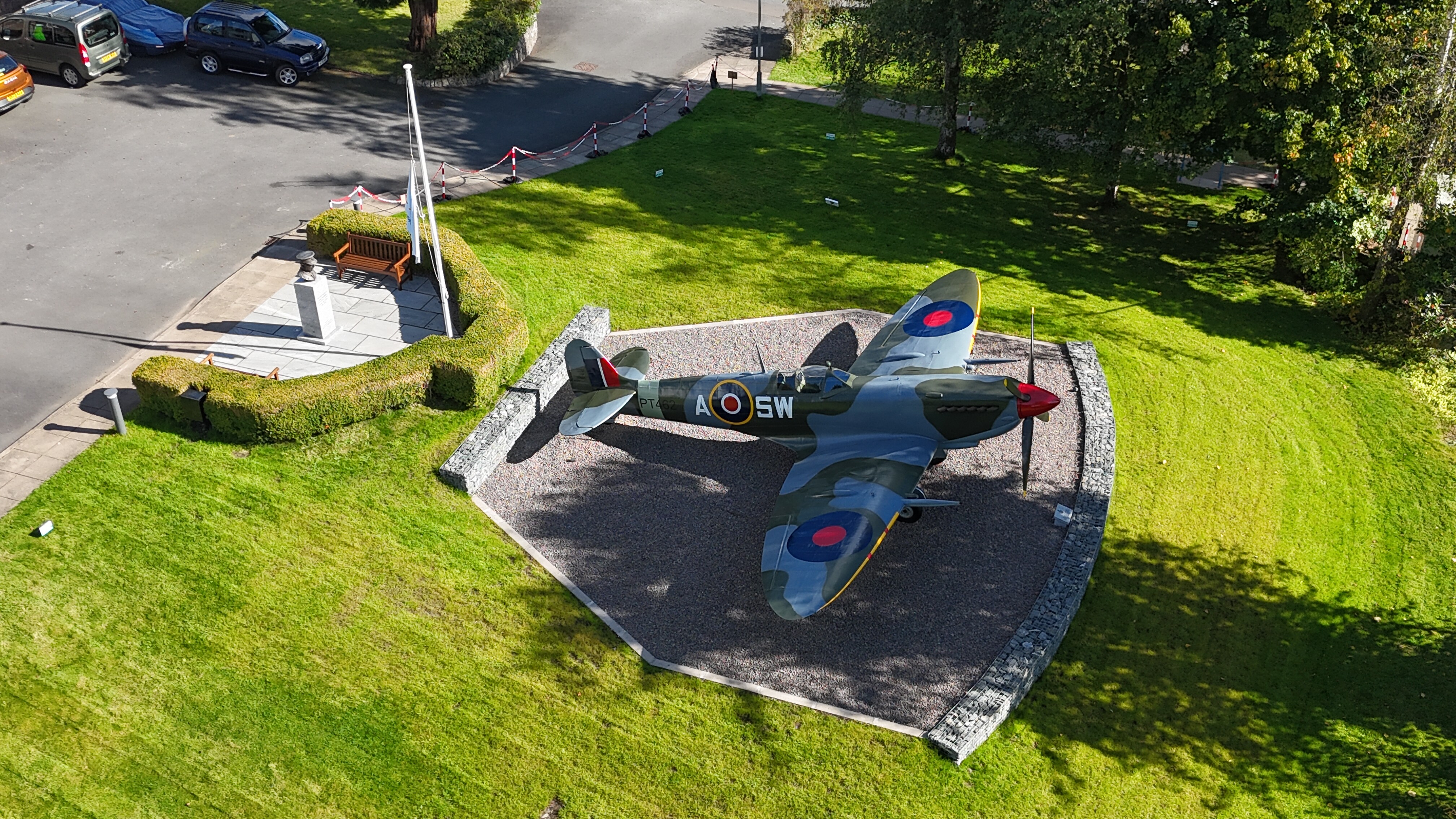 The spitfire is on private ground, but their is a care home with in the ground.
