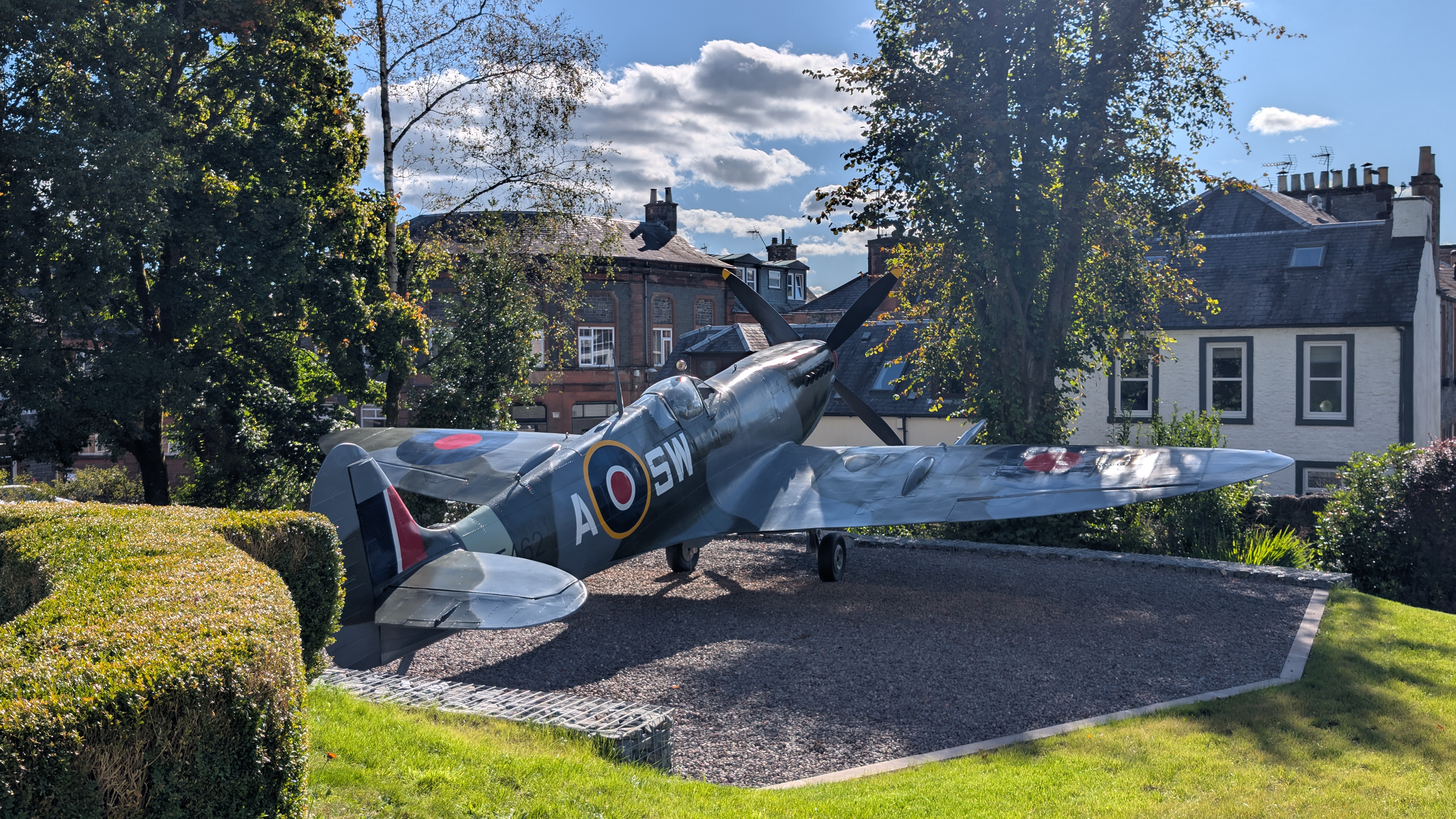 Here are a couple of photos of the hand built spitfire replica in moffat. The spitfire used to be in the garden of the Dr Hamish Macleod. The spitfire has now moved to a new home still with in moffat, and is now located at DG10 9AW, old well road in the town.