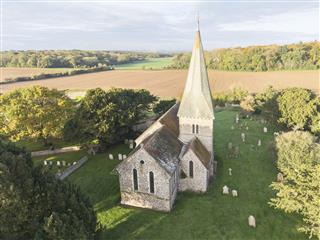 The grade 1 listed St John the Devine parish church in Patching West Sussex dates from 1282. Fine countryside around the church to fly.