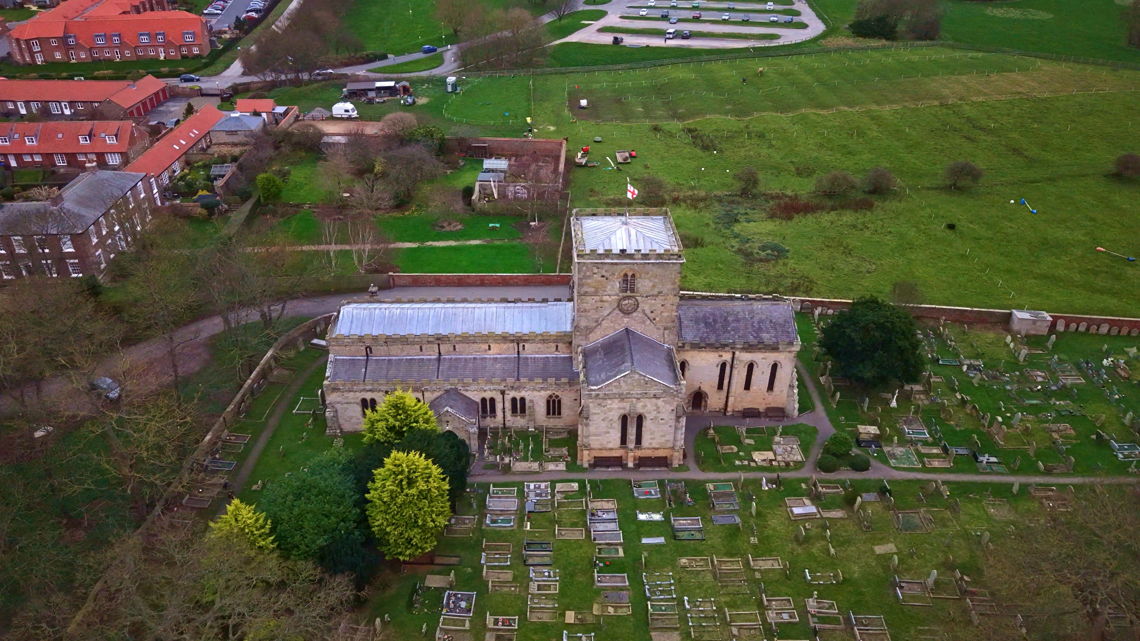 St Oswald’s church building sits at the northern edge of a ravine that divides the town of Filey in two; the church being located in the North Riding of Yorkshire, whereas historically, the rest of the town was in the East Riding of Yorkshire. The Norman tower has been a wayfaring point for mariners who were sailing between the Tyne and London, and the tower also provided a good point to aim at for those who were landing on the sands at Filey.