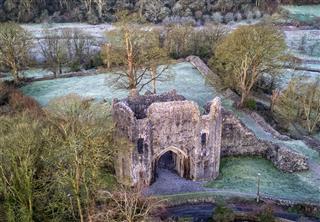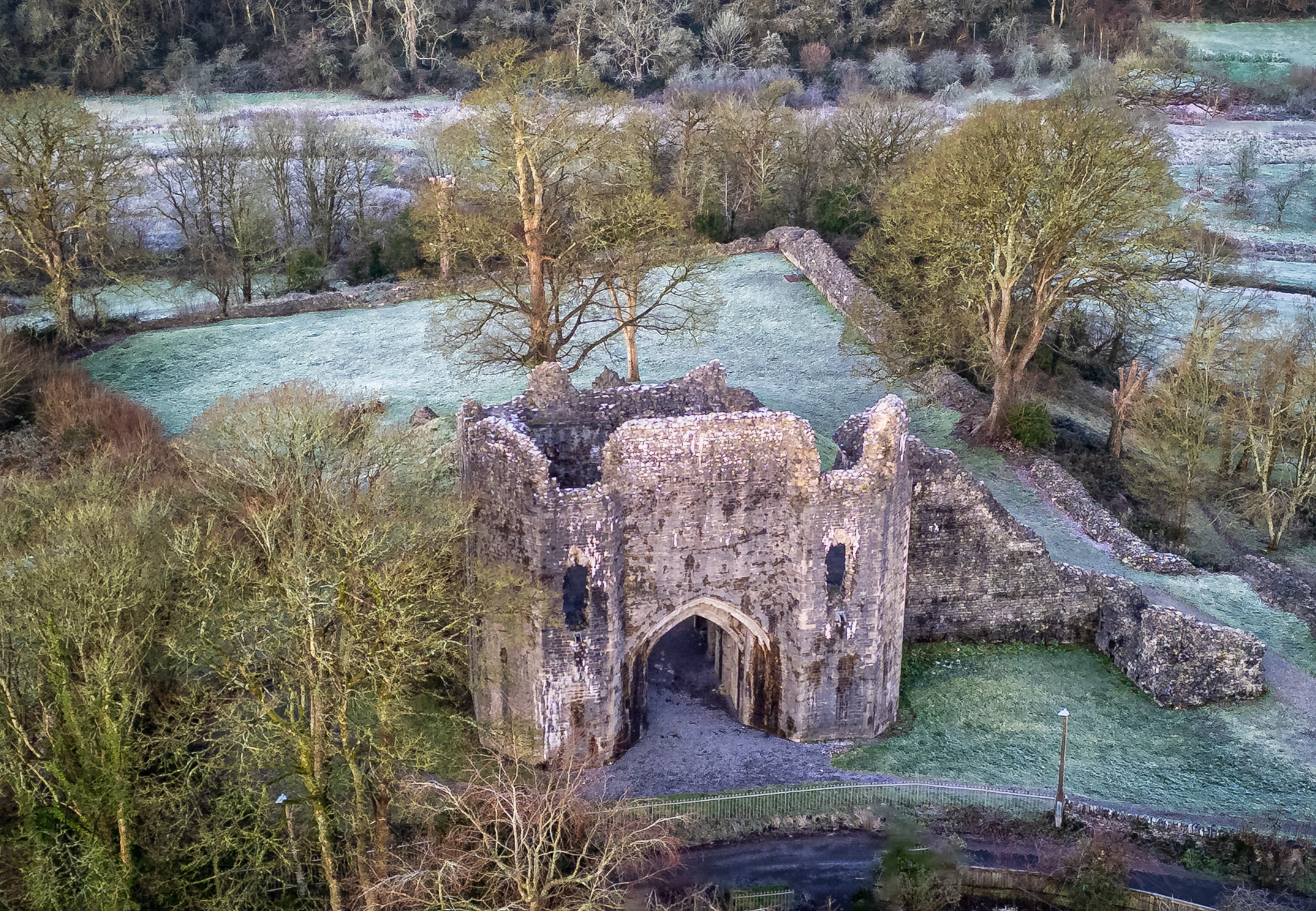 Llanblethian Castle, also known as St Quentin's or St. Quintin's Castle, was likely built by Gilbert de Clare in the early 14th century. Its key remains include a twin-towered gatehouse and a northern curtain wall. At its centre is an earthen mound with remnants of what may have been an earlier keep.