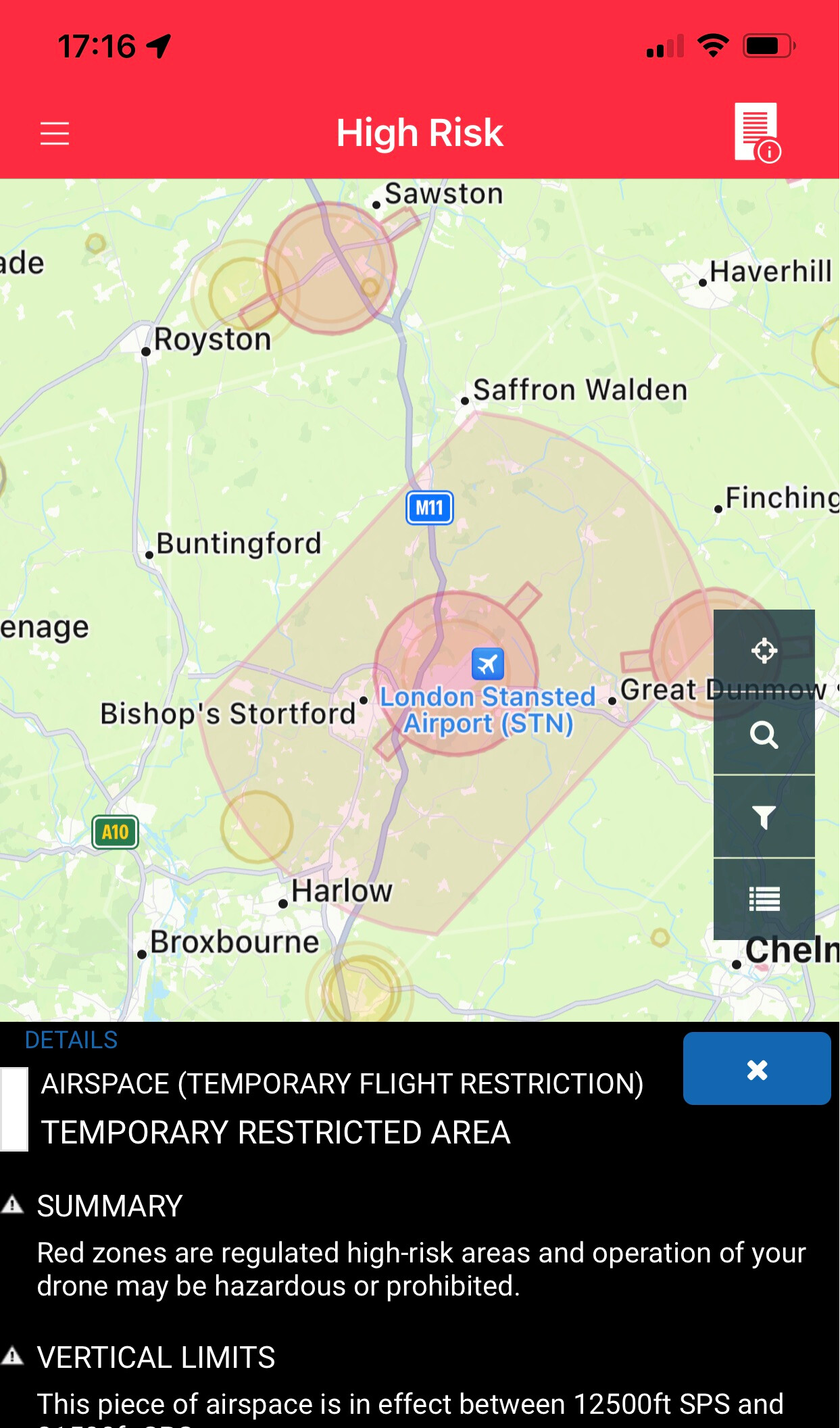 I have been asked to record a roof covering in Harlow CM20 2SX and just checked Drone Assist to check it’s all ok for later this month and it shows a ‘Temporary Flight Restriction’ NOTAM ID R0934/23. It’s very odd, because Altitude Angel does not show the same FRZ and the restriction is until 19th April 2024. Sorry if I missed something previous on the chat group, but is anyone able to kindly advise whether this is likely to be an error or if the area is going to need a Non Standard Flight Application or similar to fly there before April '24. Many thanks indeed!