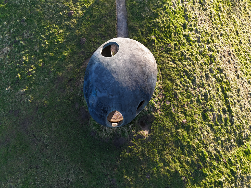 Pendle’s Panopticon, ‘Atom’, rests on the hillside above Wycoller village in Wycoller Country Park. Constructed in ferro-cement with a surface coating of metal-based paint, it is both a striking contemporary viewing point and shelter from which to enjoy Pendle’s glorious scenery, and an intriguing and beautiful object which can be viewed from afar. From inside, its circular viewing spaces frame spectacular views of the surrounding countryside.