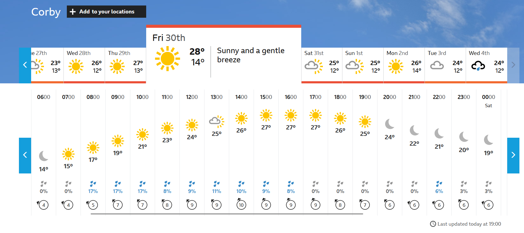 Temp doesn’t seem to be too bad, should be a nice breeze which will hopefully keep insects at bay.