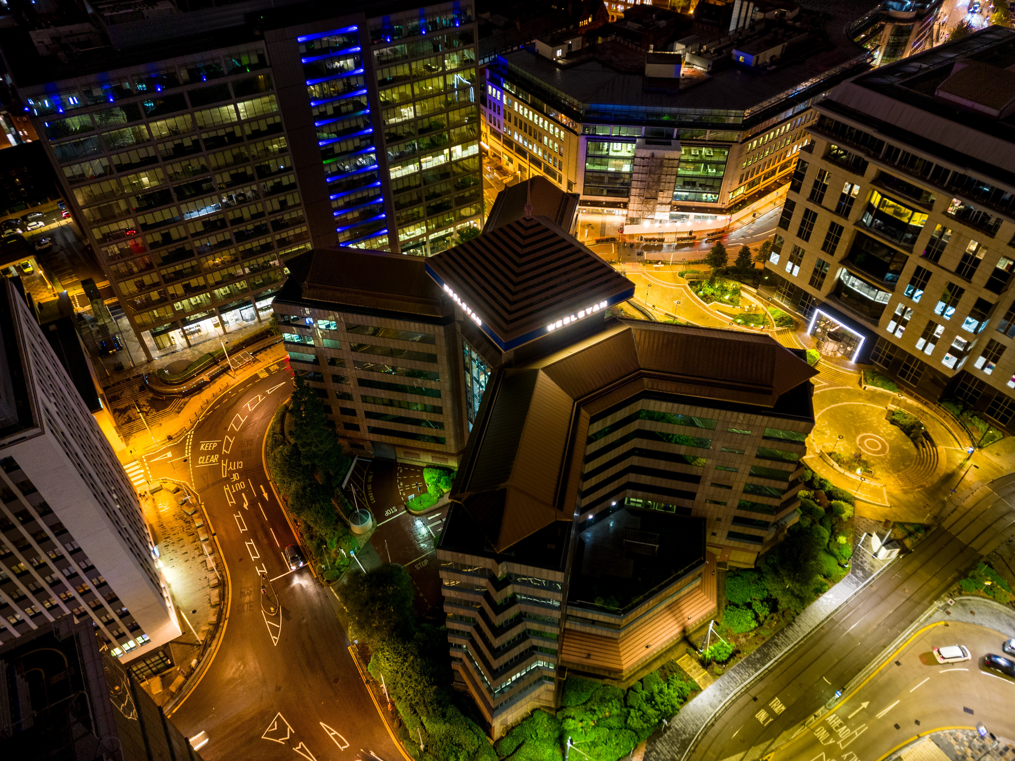 After drone club meet. A photo session and supporting a workshop on light trails I decided to get the drone out and do a few shots over Queensway and snow hill.