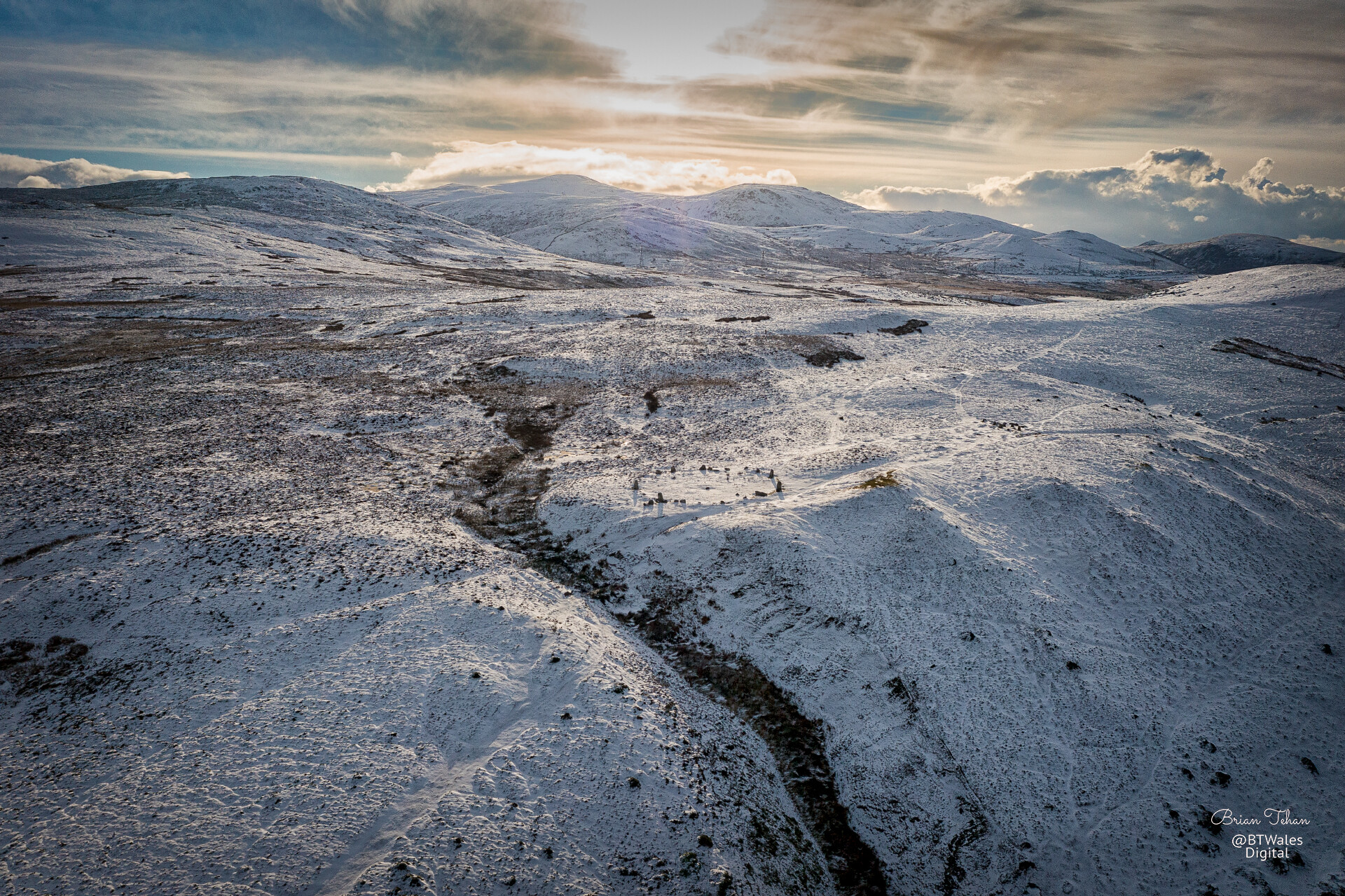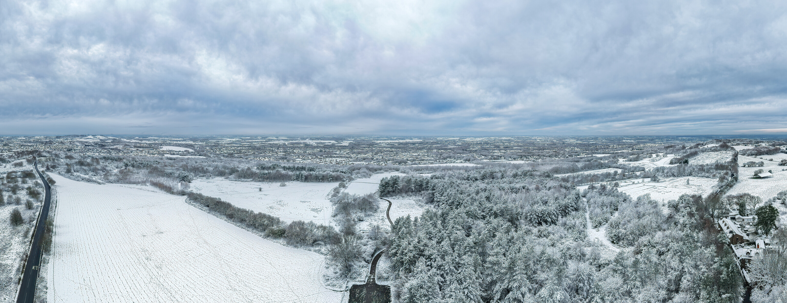 A somewhat moody looking atmospheric shot taken early evening as the sun was setting and there was a cold chill in the air with mist hanging. Using the 70mm lens on the Air3S, Free Pano mode. It’s surprising how much detail is in the dark areas. Not played about with, just auto-corrected in LR for tone and colour etc.