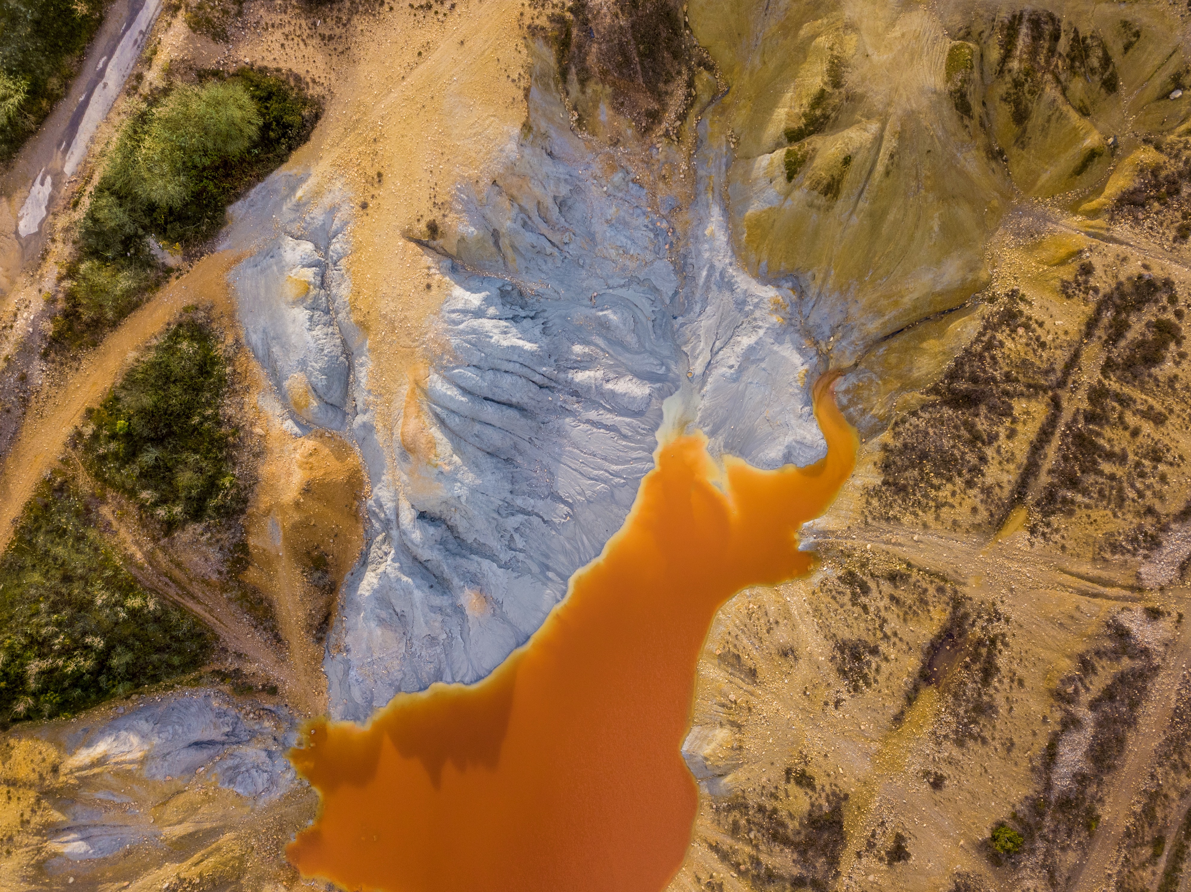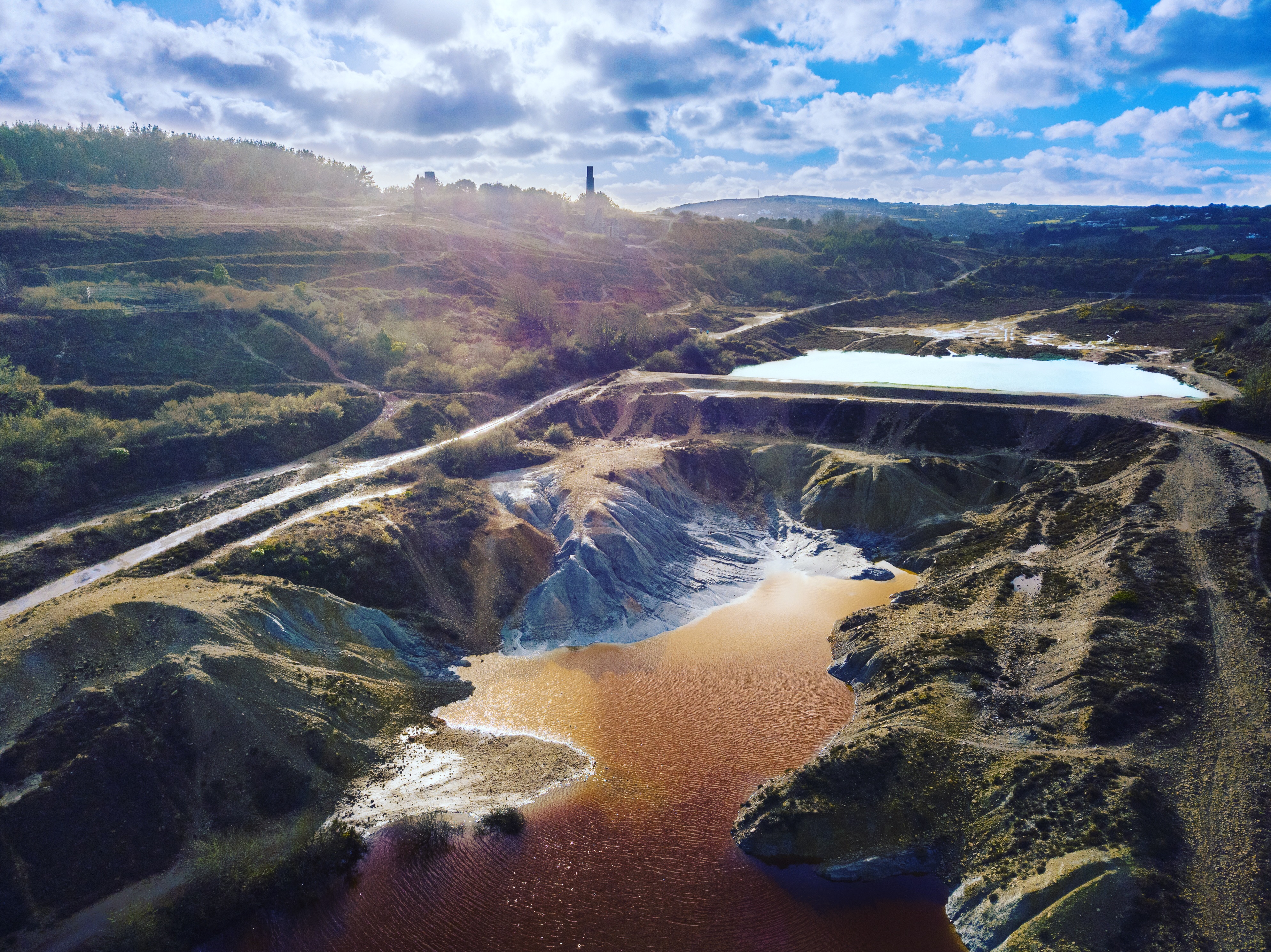 Flew around an old copper mine today. The Orange lake really is that orange with copper ore, place is a bit like the Hills have eyes.
