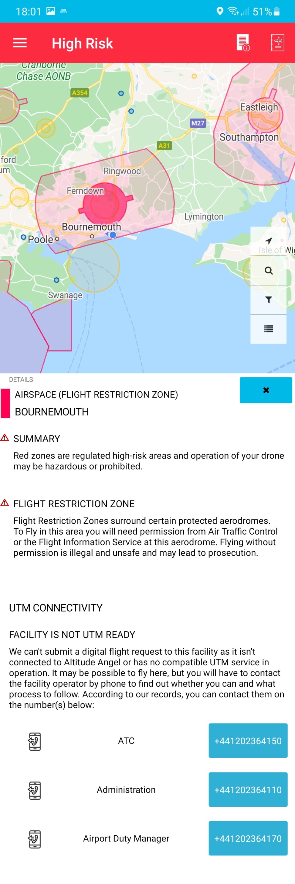 And I am not knocking DS its great for what it does but the info on the Airspace restrictions in Guardian or Drone Assist is more informative. DS simly says its a Class D CTR airspace but no details of it whereas DA will show you the full restriction …