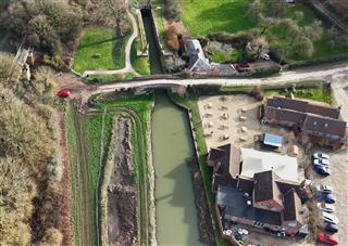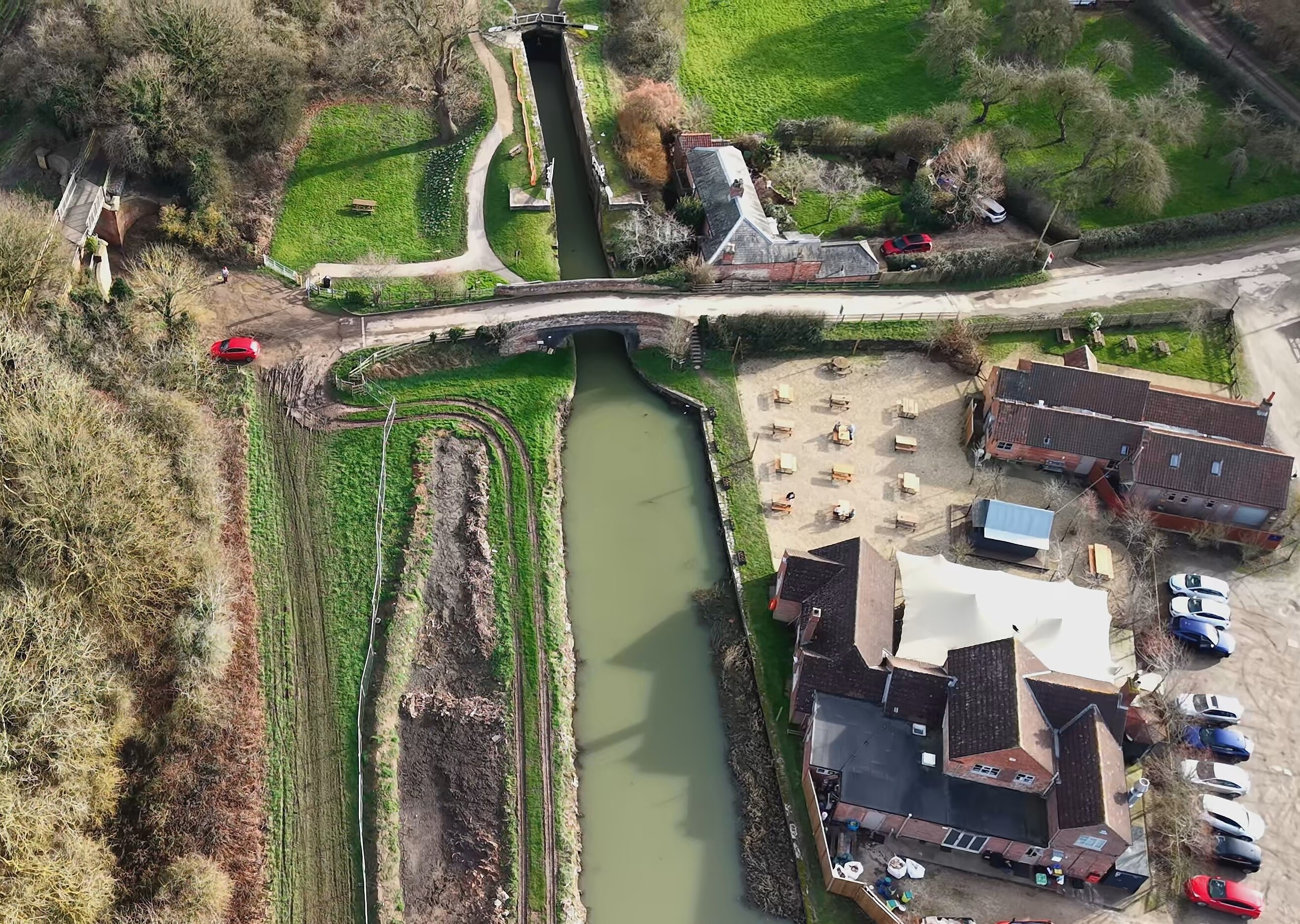 The Dirty Duck pub is one of the more interesting features on the navigable section of the Grantham Canal, next to a flight of three locks. Easy to get to and to park. Also not far from Belvoir Castle.