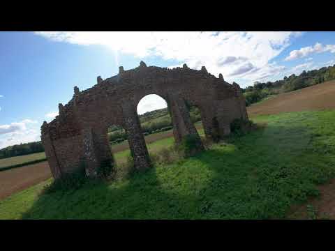 The “Eye Catcher” is a historic folly, a sham ruin, located at Steeple Aston in Oxfordshire, England. It was designed by William Kent around 1740 and serves as an important landscape feature at the Ronsham Park estate. The folly is built of Naristone rubble with squared dressings and features arched openings and rubble pinnacles.