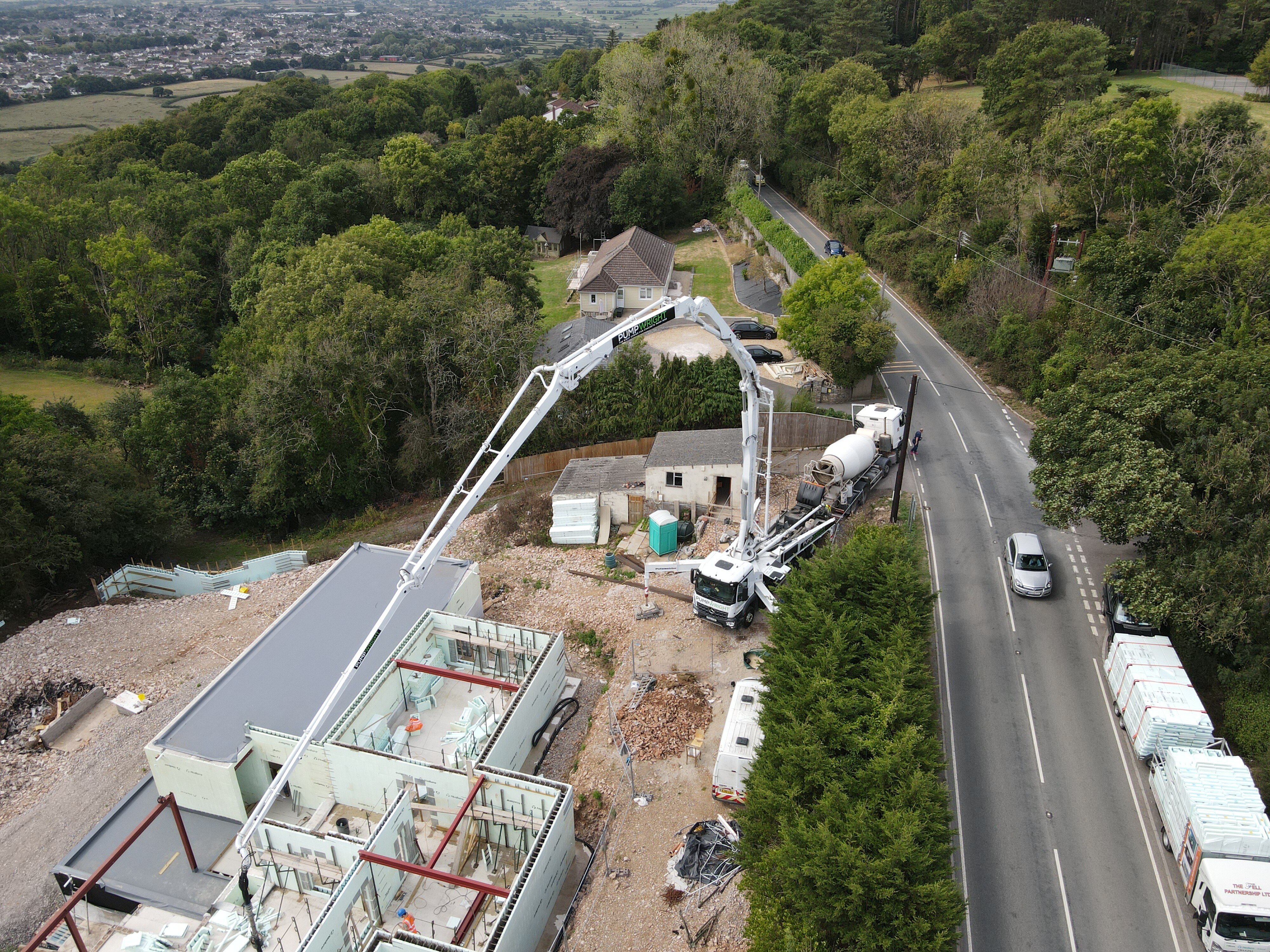 3: A “Readymix” type rotating drum truck loading the concrete pump ![]()