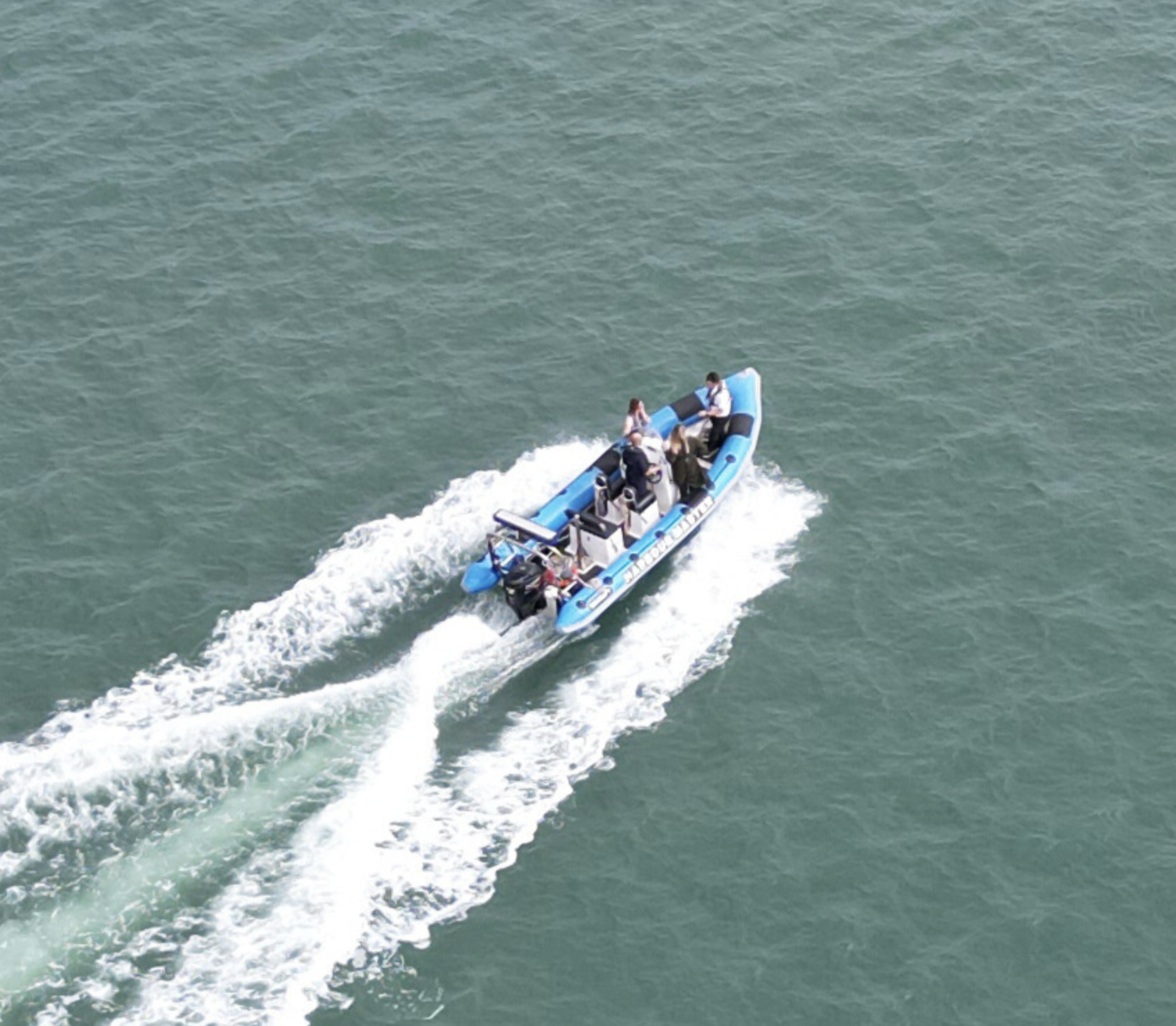Item 23. A Rigid Hulled Inflatable Boat (RIB or RHIB) in motion (visible wake)