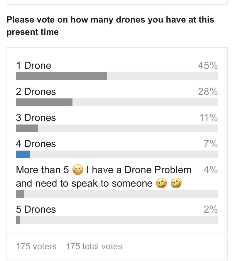 And one drone is leading the other poll, with 4% of us needing some sort of help for our Drone addiction ![]()