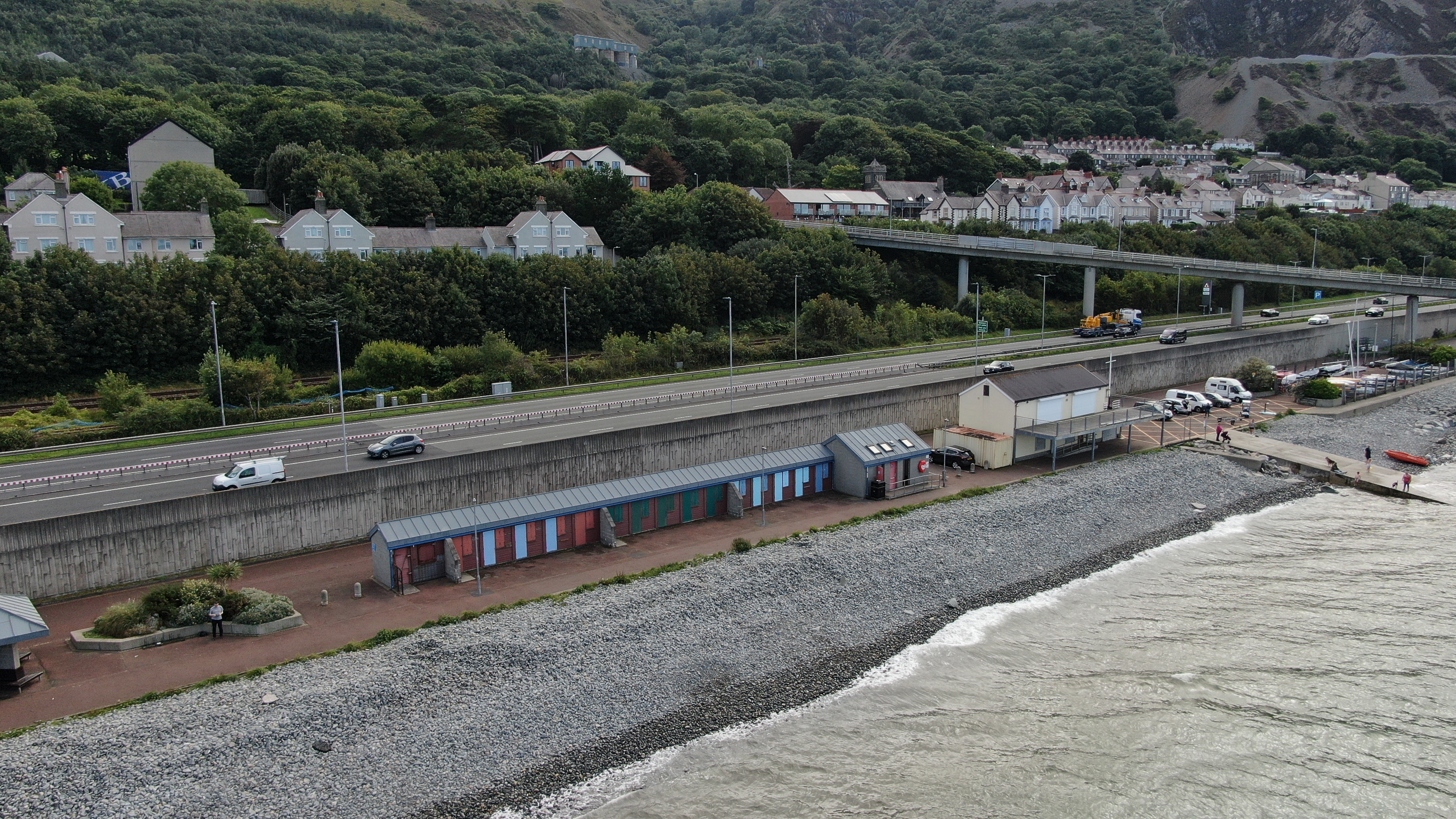 These are the beach huts at Penmaenmawr earlier this afternoon, all 15 of them.
