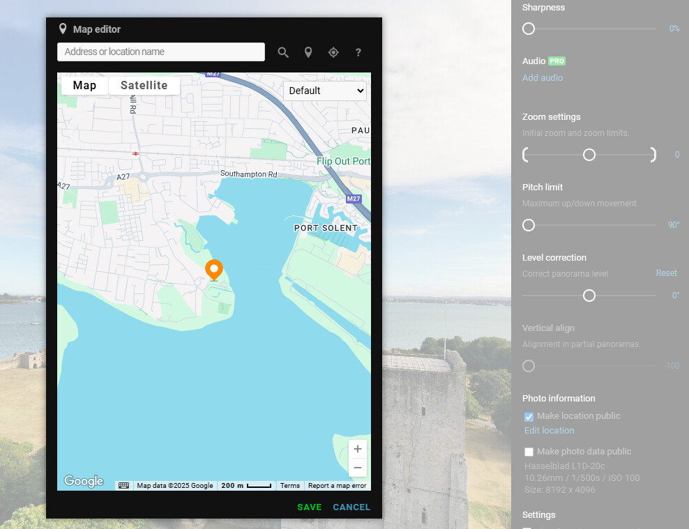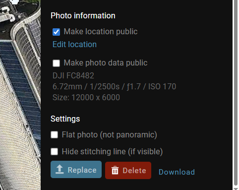 If you’ve created the image by stitching yourself, then you need to search for the location before it gives you a pin to position more accurately.