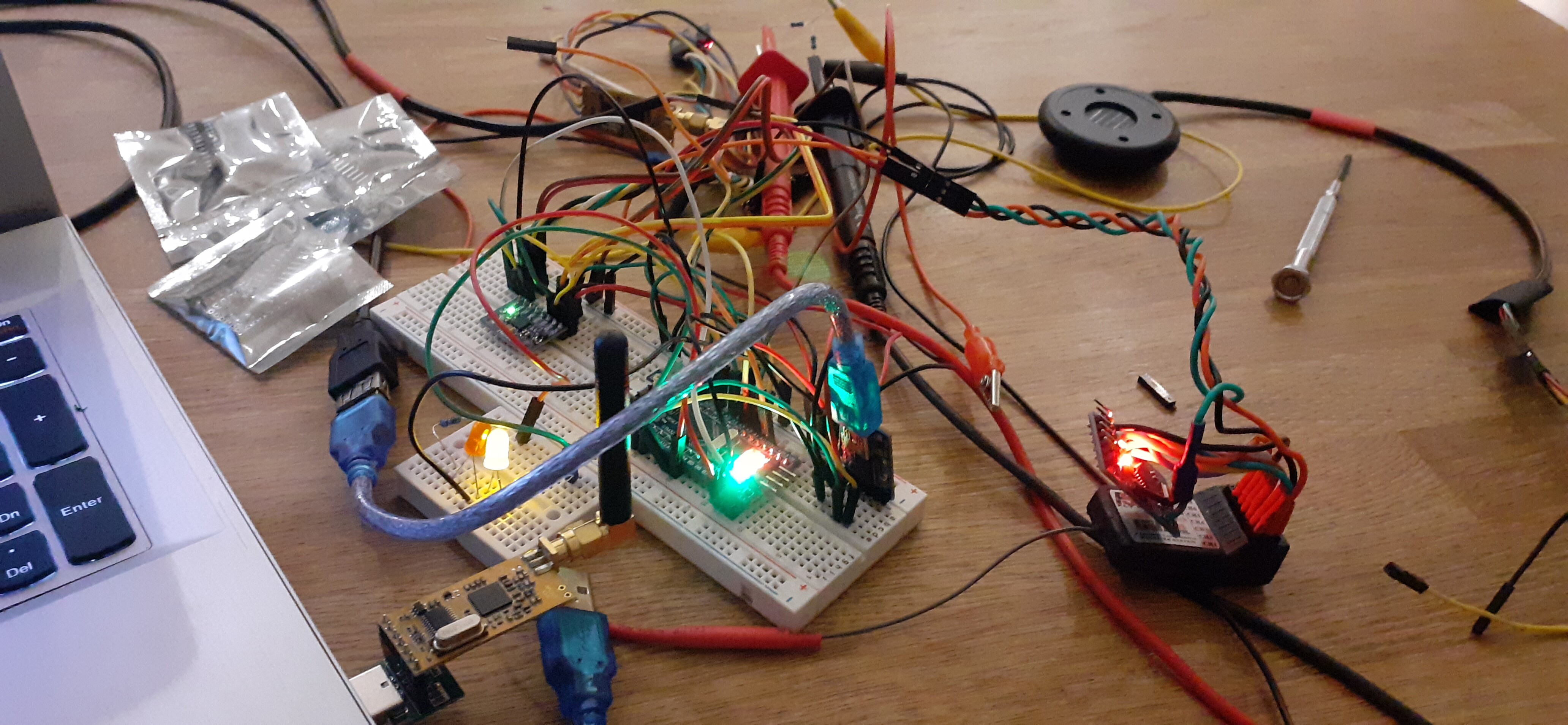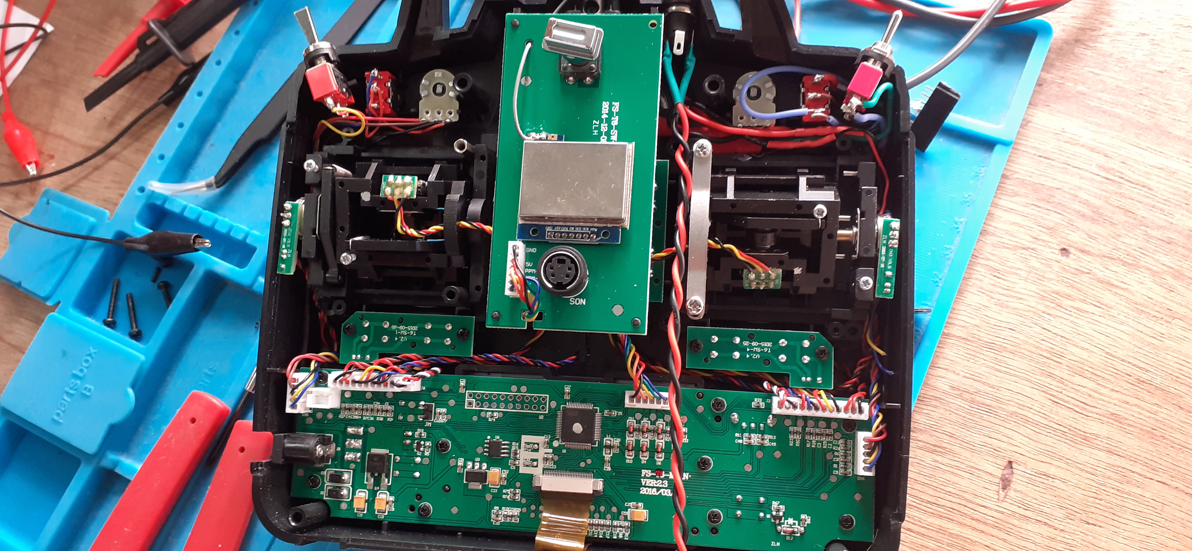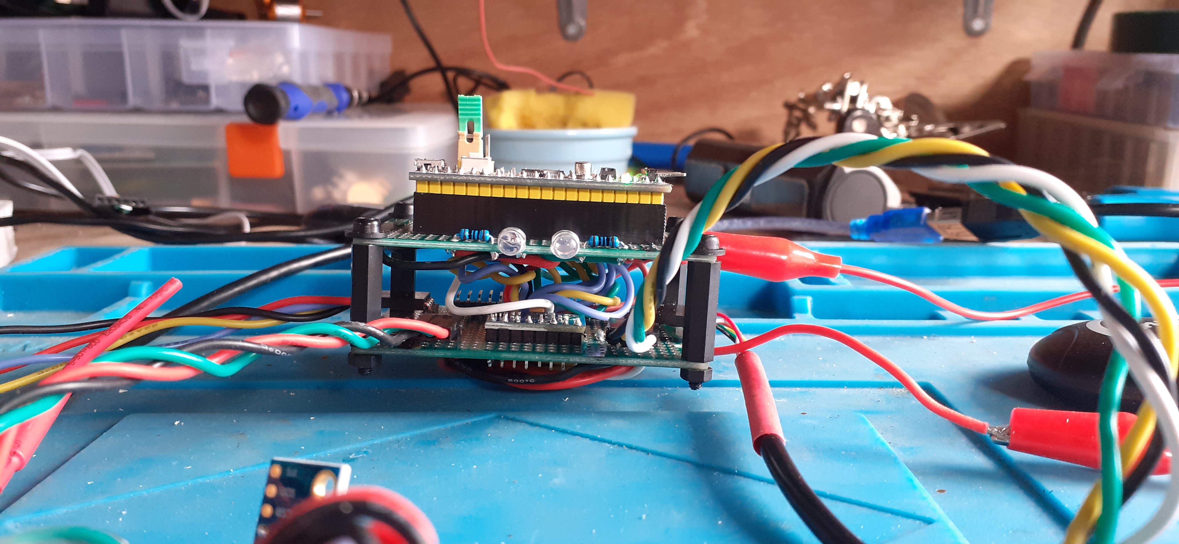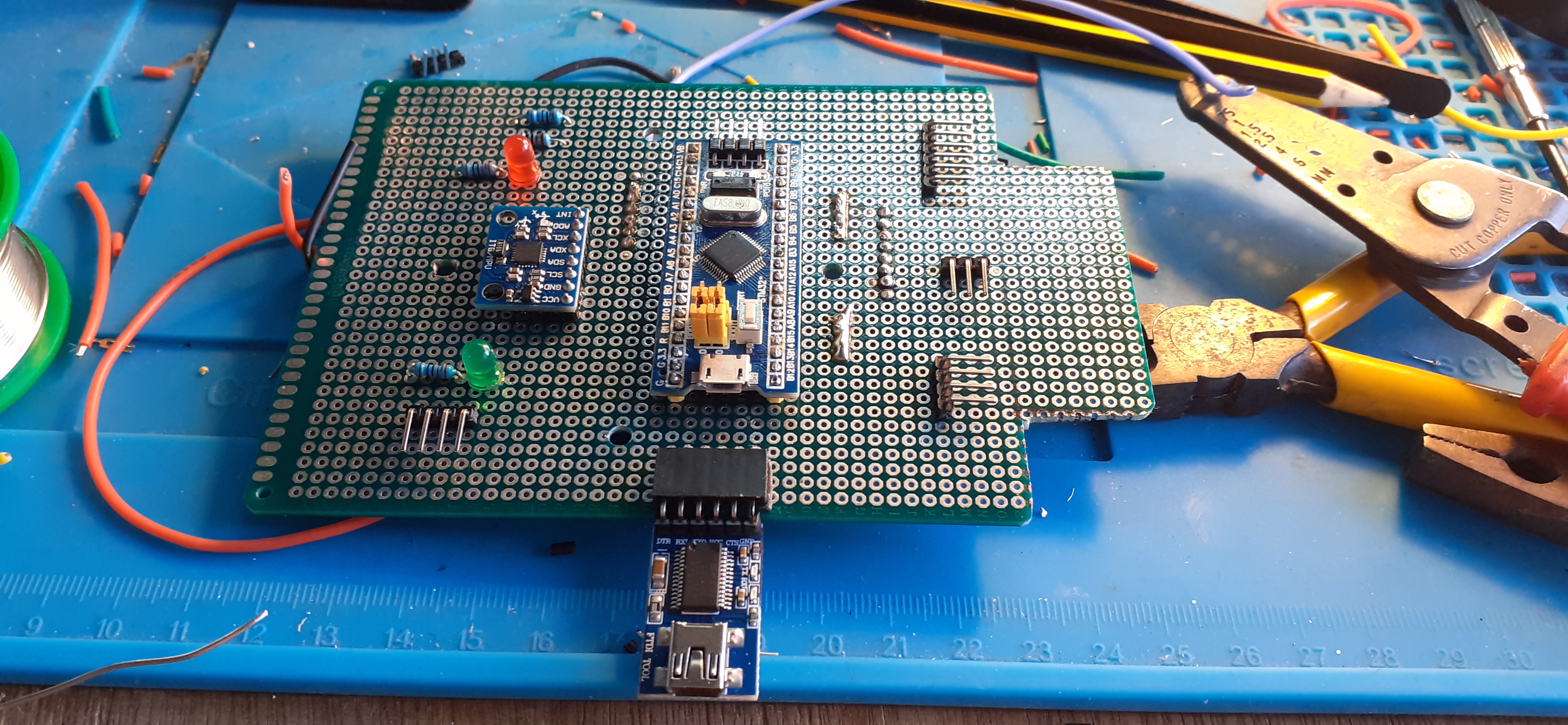 with a self-built flight controller, the first one was an Adruino Uno with a GY-521 MPU-6050 Module 3 Axis Gyroscope + Accelerometer, the second one is an STM32 Blue Pill, with GPS, Compass and an Arduino UNO telemetry system. It would fly waypoints, had altitude and GPS hold and RTH.!