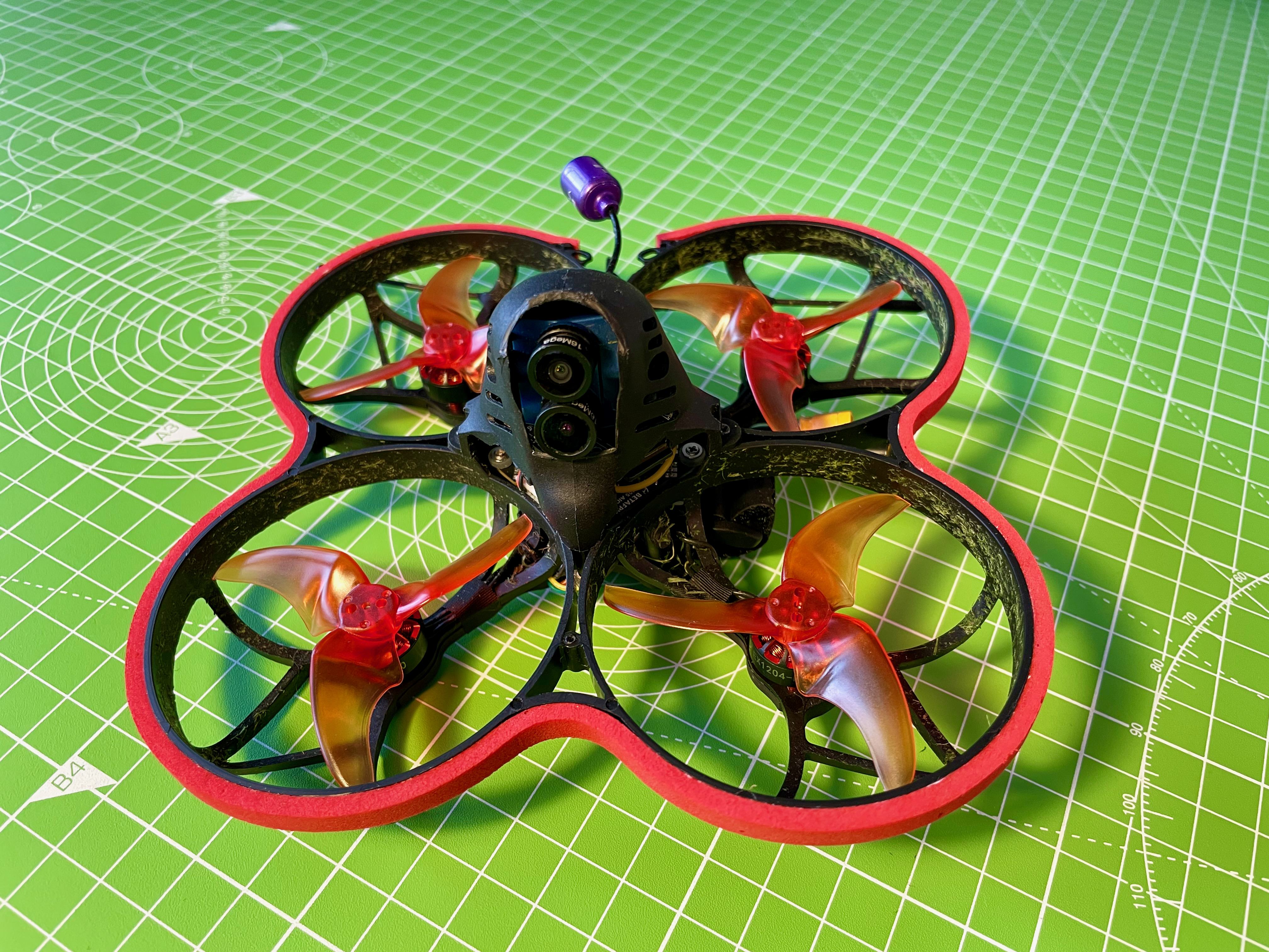 Well I finally plucked up the courage this afternoon and took “Covid-19x” out for a crash or three… First flight didn’t go well - it took 10-15mins looking for it, as spotter wasn’t paying attention. Then realised one of the receiver antenna on a zip tie was chopped down a bit. I need stronger less bendy zip ties. The second flight was better but I think I knocked Acro mode on (I had when I took googles off and looked) as it started spinning wildly, until I hit the kill switch. The result was a battered li-po. Do you guys use battery protection of some form or other as this could get expensive? The subsequent flights were slightly better - still crashed it every time though. I kept finding I would be moving my head to where the sound was coming from rather than focus on the google image. It going to take a little bit of getting use to. Blimey its quick though. No more than just under half throttle for me. I tried air mode a couple of times, but wasn’t convinced when I heard the motors suddenly start screaming, each time resulting in a crash. I called it a day when I finally broke a prop. All in all it wasn’t as bad a session as I was envisaging. Lots of lessons learnt. I need to find somewhere better to fly.