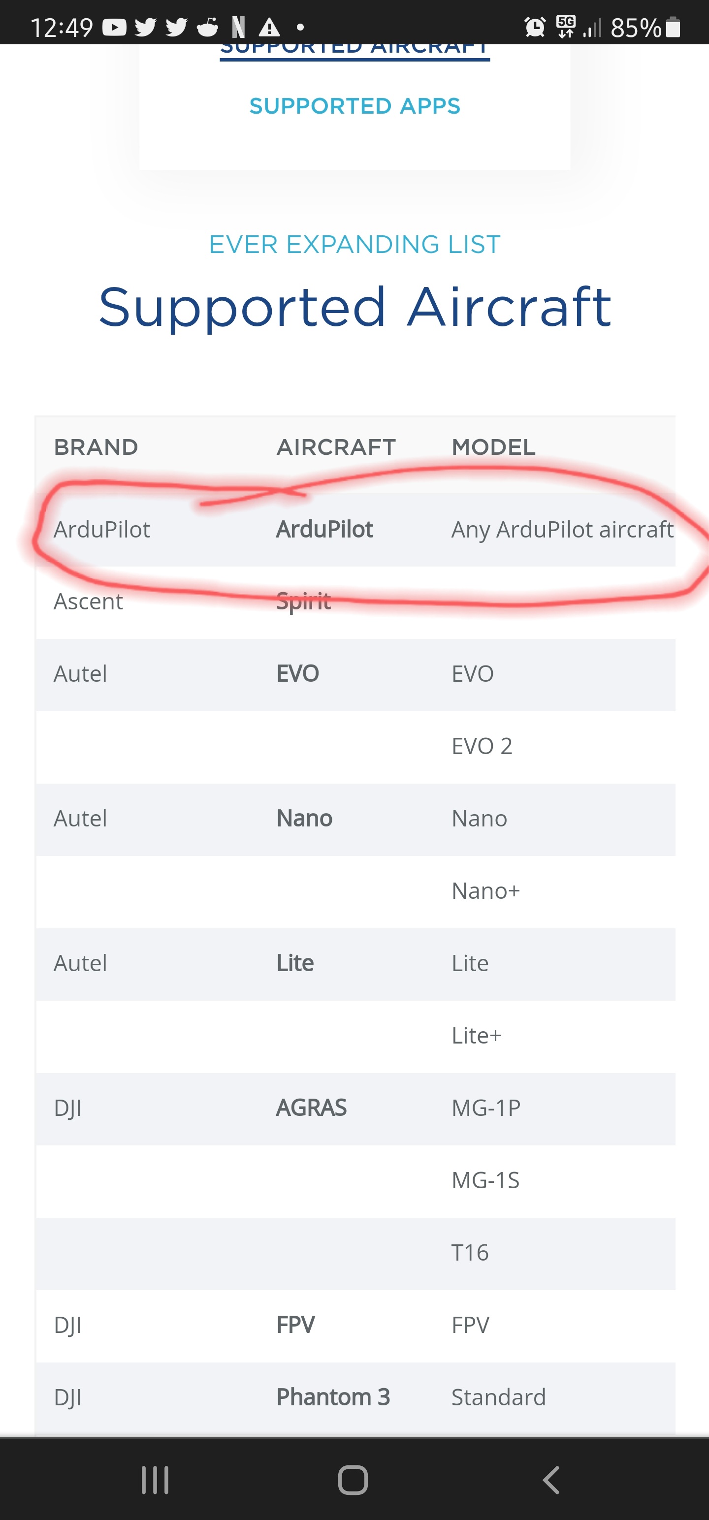 Supported drones/aircraft …