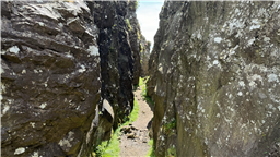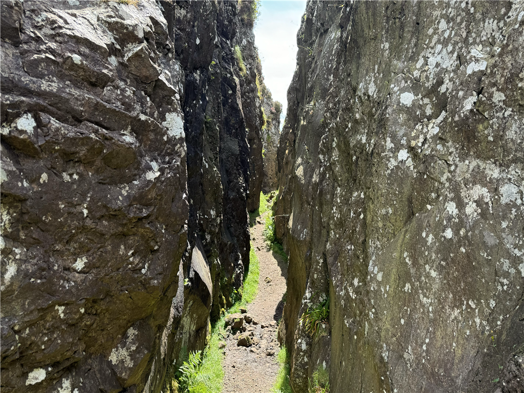 The Whangie is a cleft in the igneous rock, purportedly caused when the devil, excited about what he was going to get up to at a coven on the nearby Stockiemuir gave a flick of his tail and cleeved the rock.