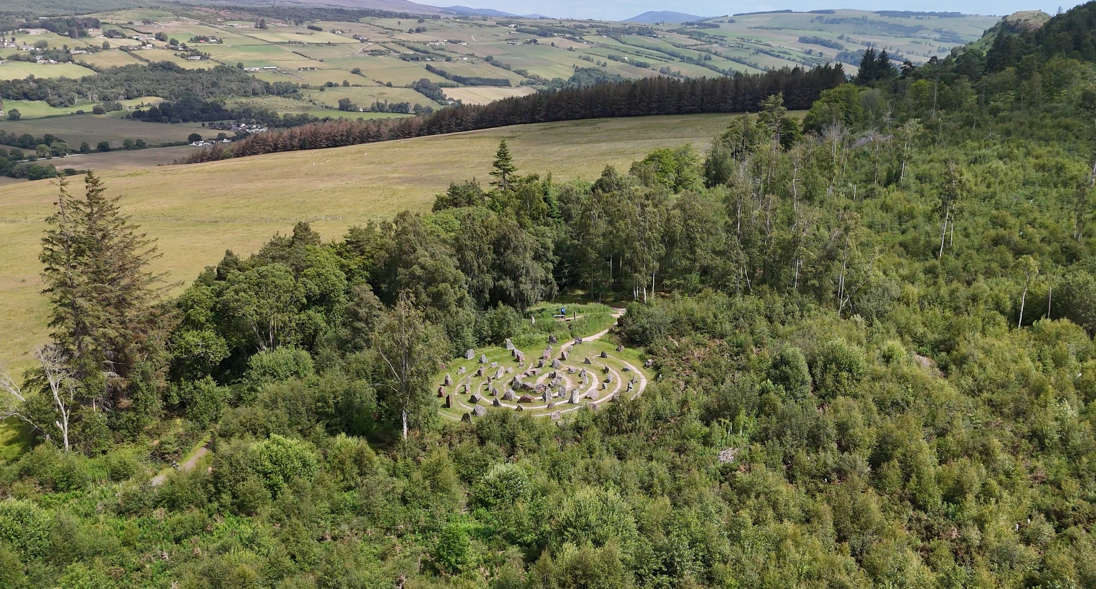 The Touchstone Maze, created in the 90's from rocks from every area of Scotland, aligns with the Sunrise and Sunset of the old Cross Quarter days and Solstices and Equinox.