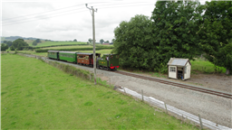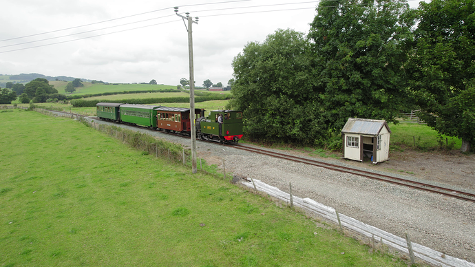 This location at 52.649354, -3.220368 is in a field next to the track at a picturesque place to film the passing trains. To add to the authenticity it even has a little waiting room.